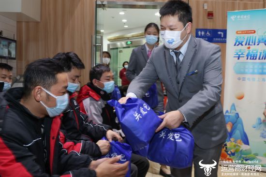 活动结束后,营业厅将保温杯、围脖以及防疫物资、暖宝宝等在内的关爱包送到了顺丰快递小哥、急送骑手手中,感谢他们在寒冷冬日里守卫城市安全、服务市民生活。