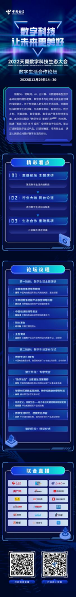 在数字生活领域,数字生活合作论坛将于12月29日14:30召开,汇聚生态产业链力量,打造新赛道、培育新主业。