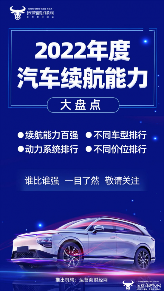 近日,运营商财经网公布将推出2022年度汽车续航能力系列榜单,聚焦新能源汽车行业最受关注的续航领域,为大家进行详细梳理。