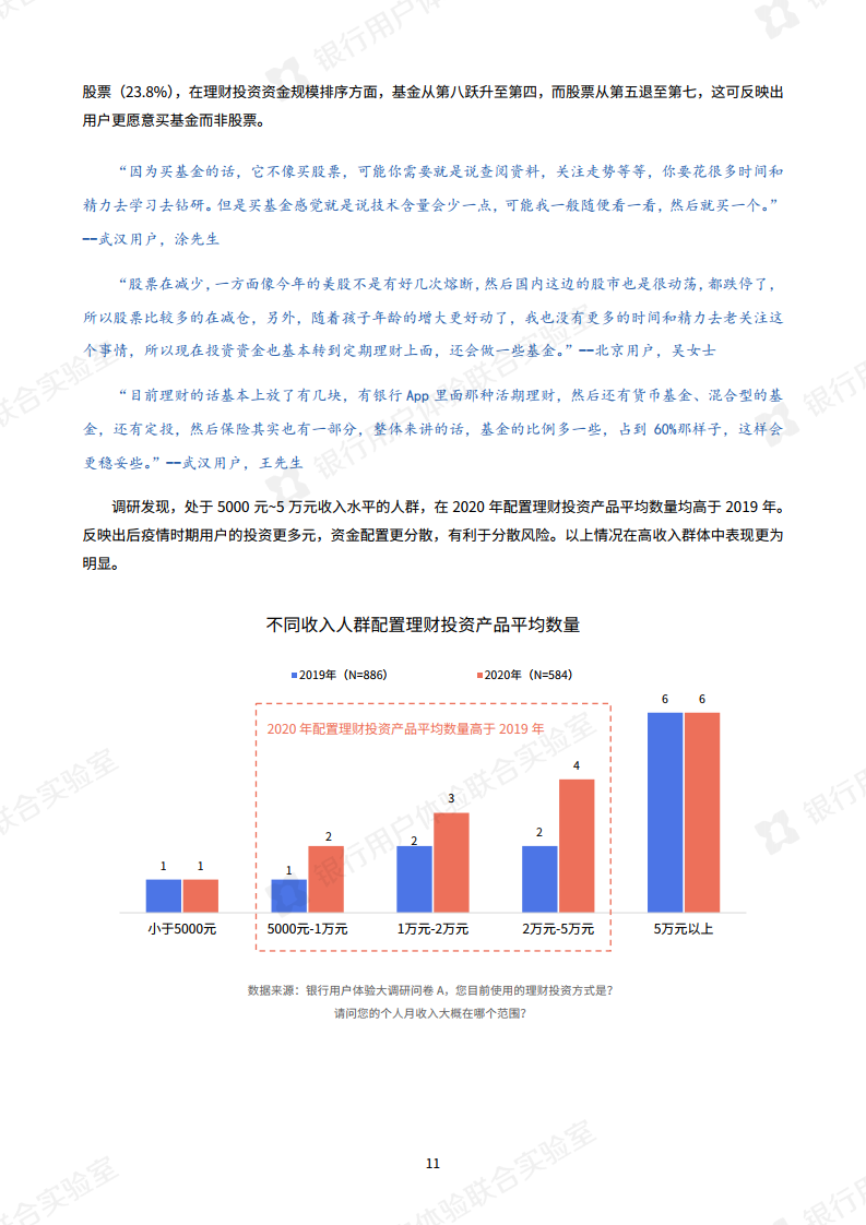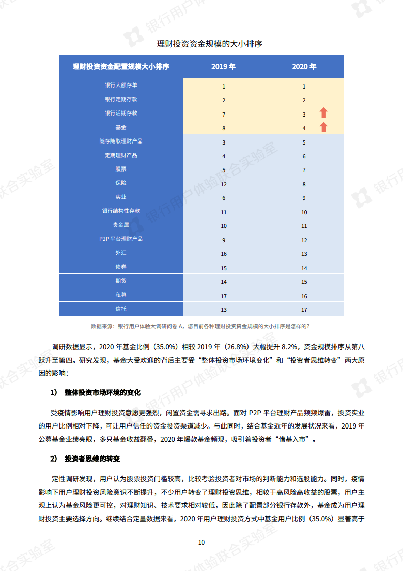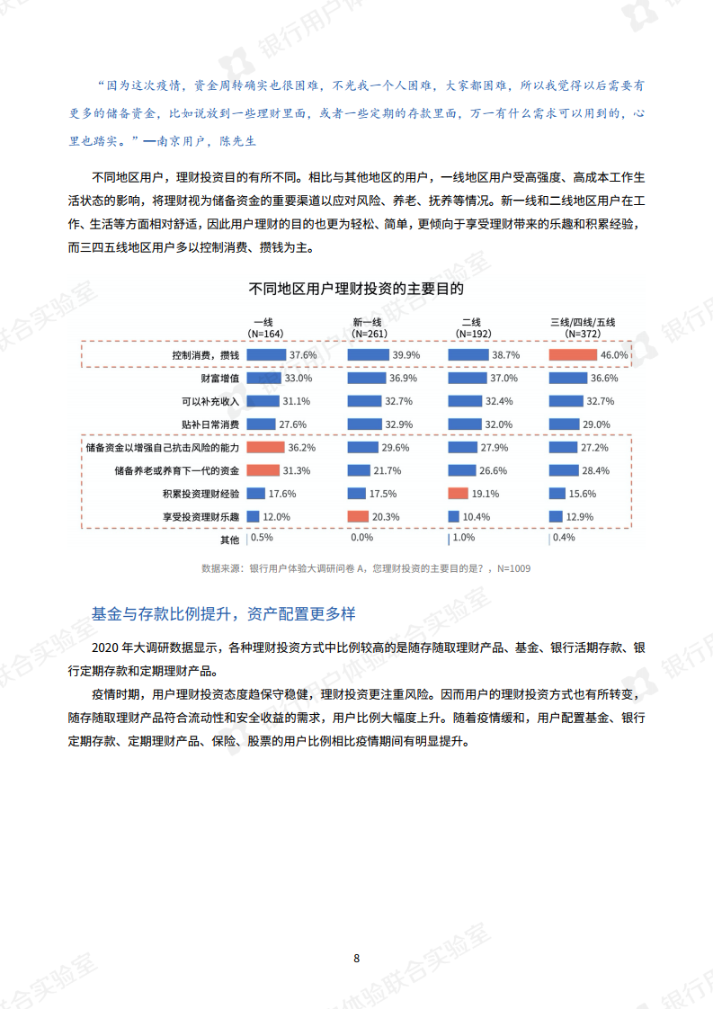 随着疫情的改善,用户对后疫情时期的理财投资环境呈现信心回暖的现象,产品多元配置意愿较高。