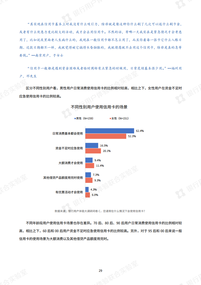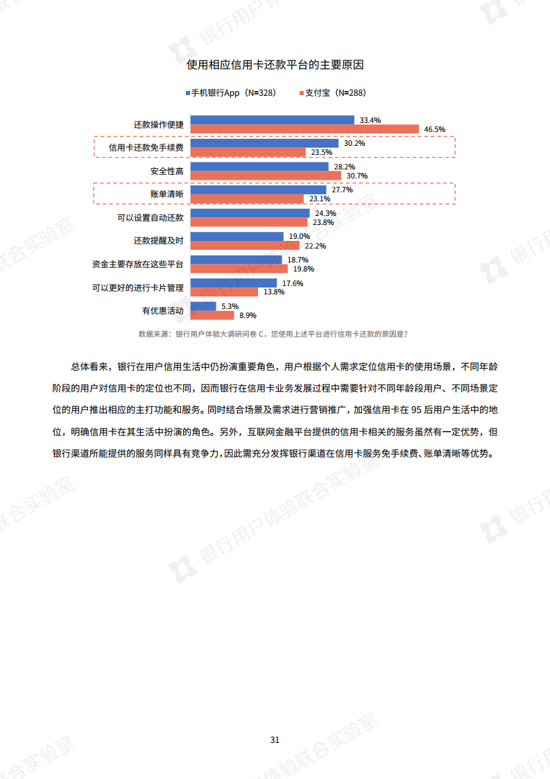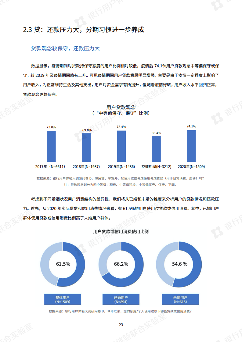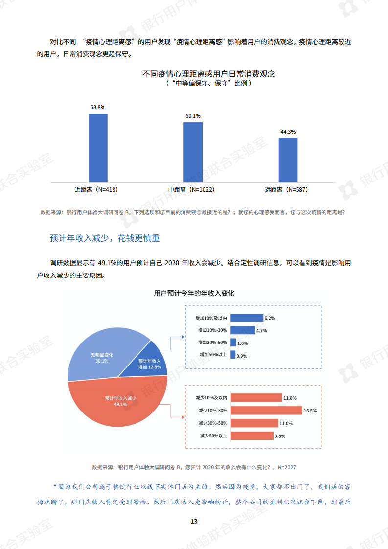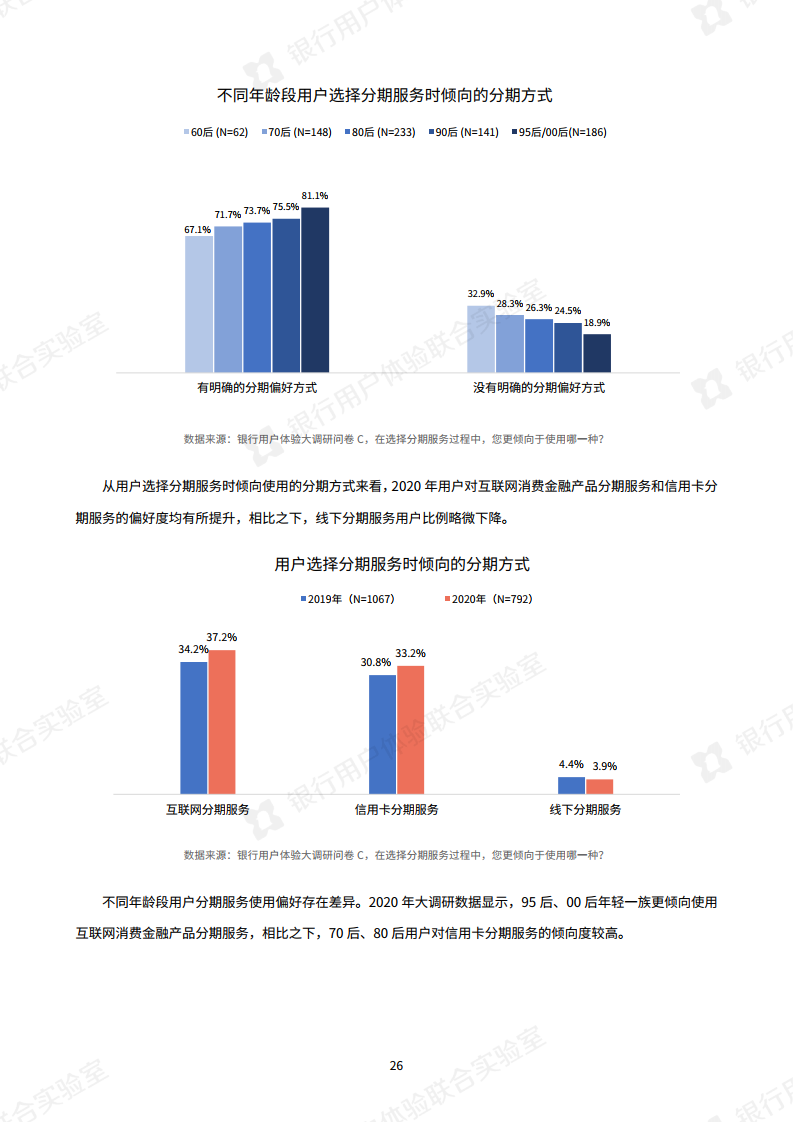 疫情的发生使银行大力倡导非接触式服务,银行业今年最明显的特点是“线上化加速,银行试水新营销模式”。调查显示,手机银行APP已成为银行服务“主战场”,通过手机银行App办理业务的用户与去年相比,提升了15.9%。此外,今年银行还开展了线上的新营销方式,比如客户经理线上工作室,线上课堂或短视频推广,用户对这些新营销方式接受度较高。报告指出“以短视频为代表的新营销方式,有助于转变用户对银行的刻板印象。”