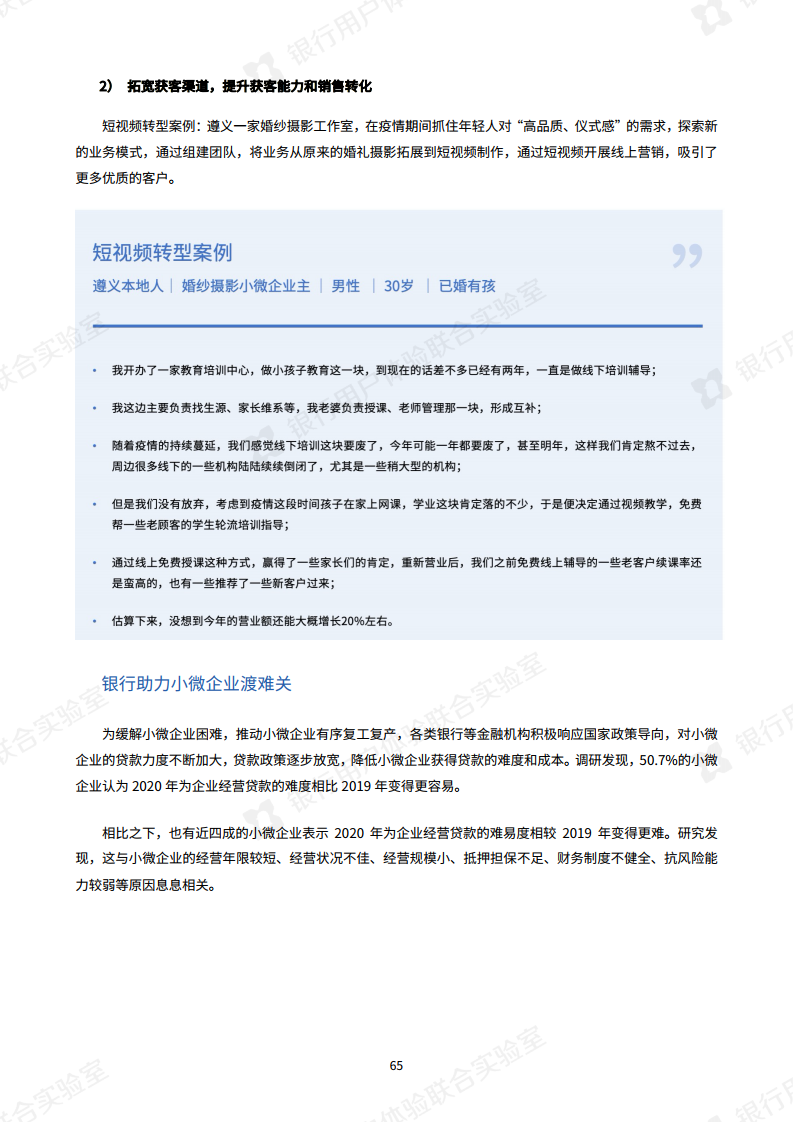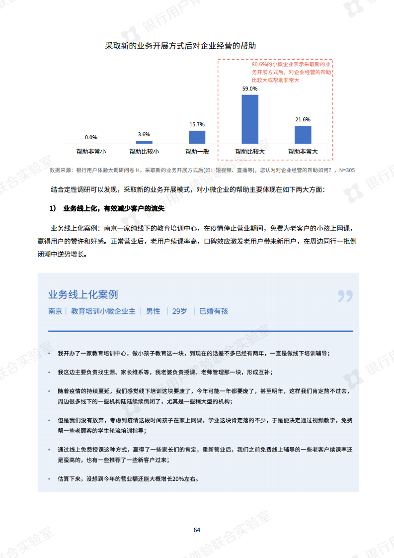 最后,报告还就小微企业主面临的经营难题,探讨了一些应对措施。例如银行通过打通小微企业的关系链上下游,帮助小微企业主搭建客户交流平台,缓解客户拓展的难题。相信在多方的共同努力下,小微企业将度过困境,重获增长。