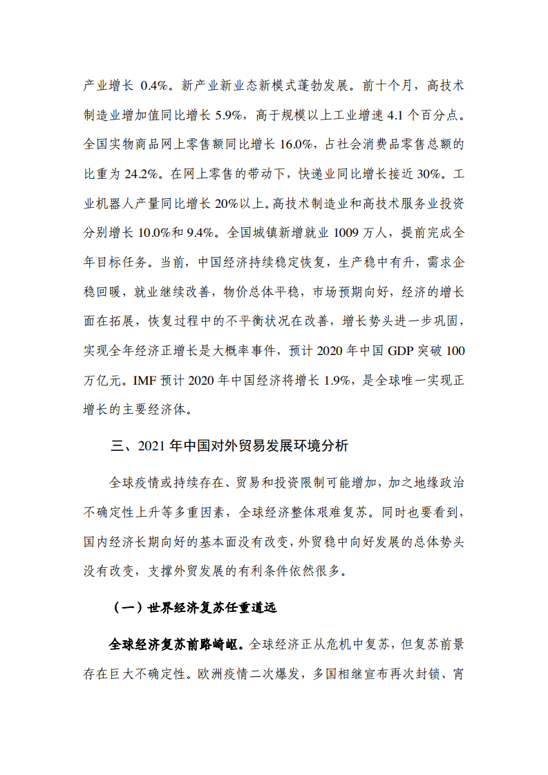 报告认为,2013年中国对外贸易发展面临的内外部环境可能略好于2012年,但制约外贸稳定回升的阻力依然存在。在外需不足的情况下,中国出口受贸易摩擦的影响持续加大,转变外贸发展方式的任务也更加紧迫。随着国内外环境的深刻变化,中国外贸可能难以再现前些年的持续高速增长。