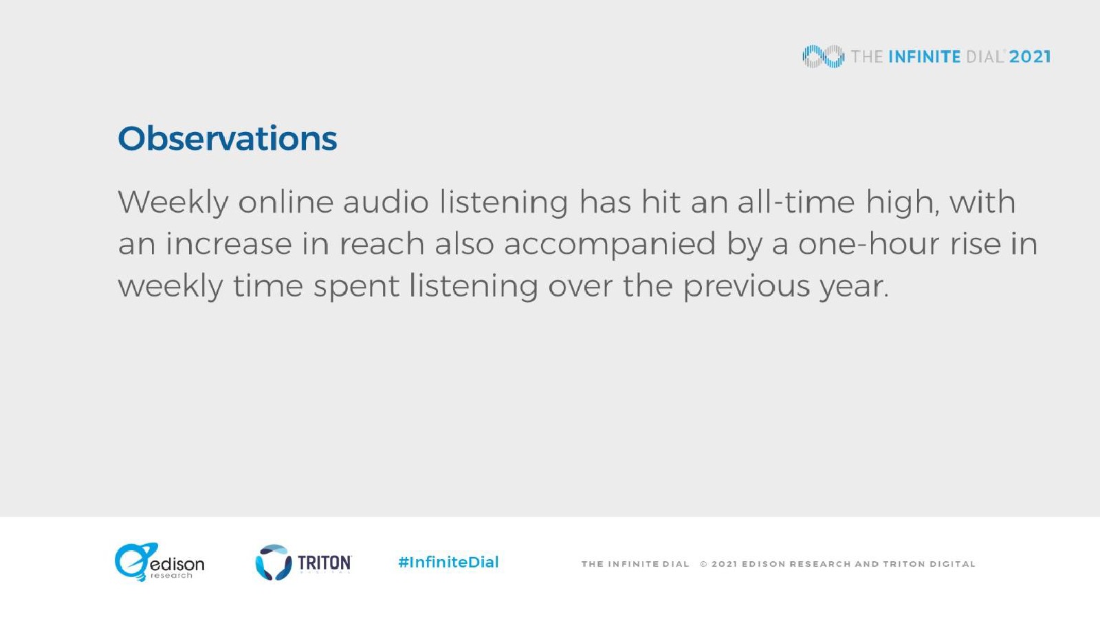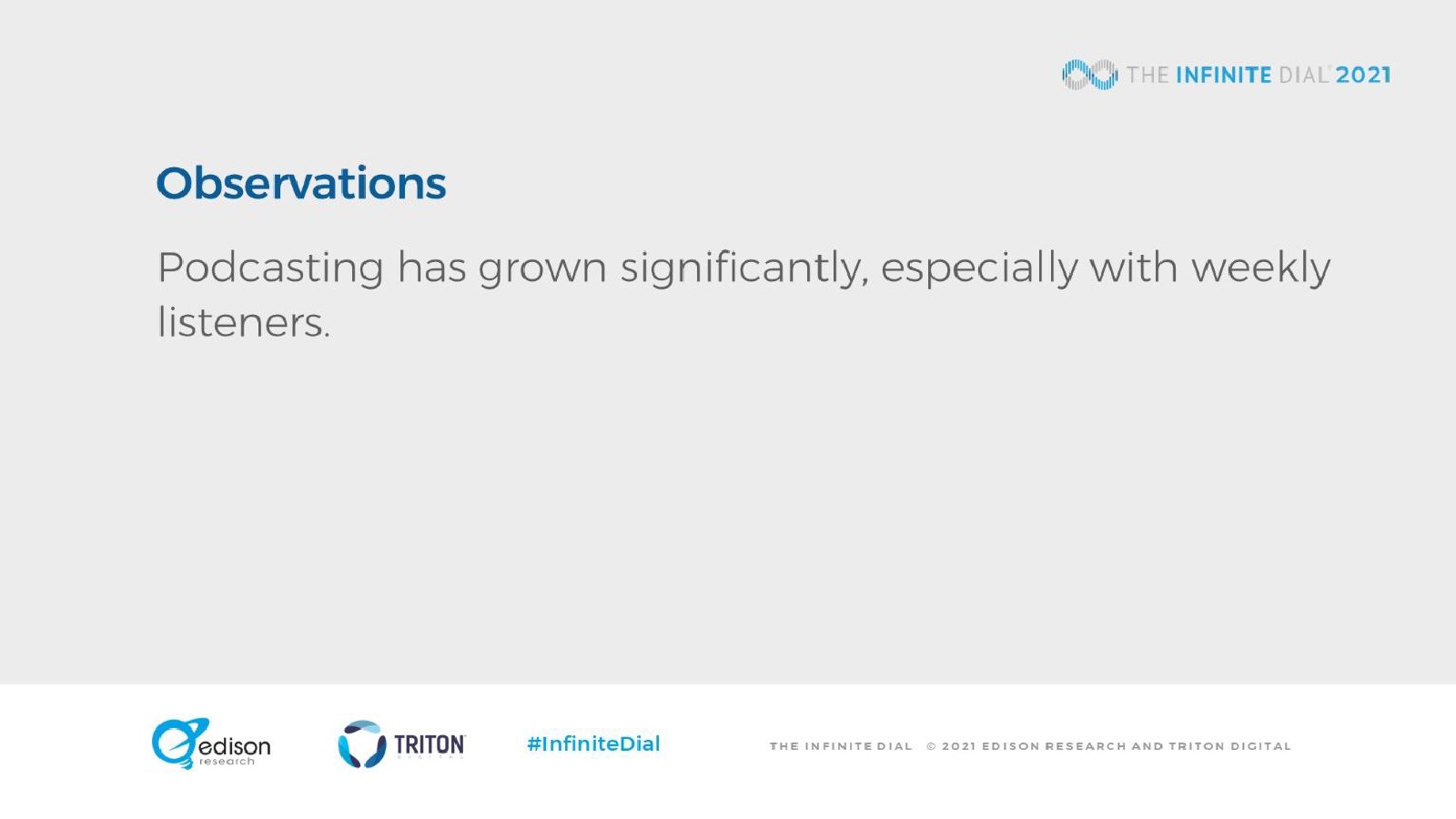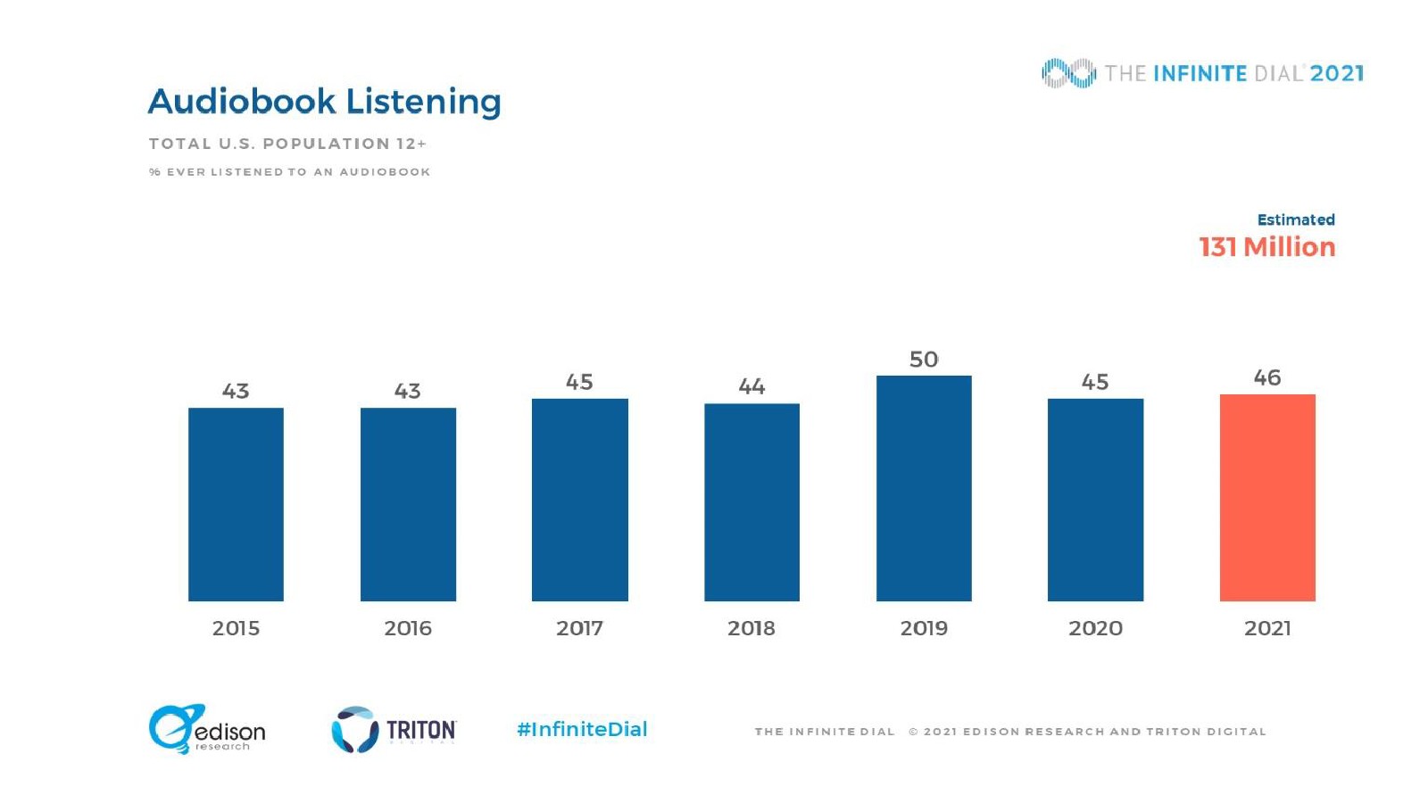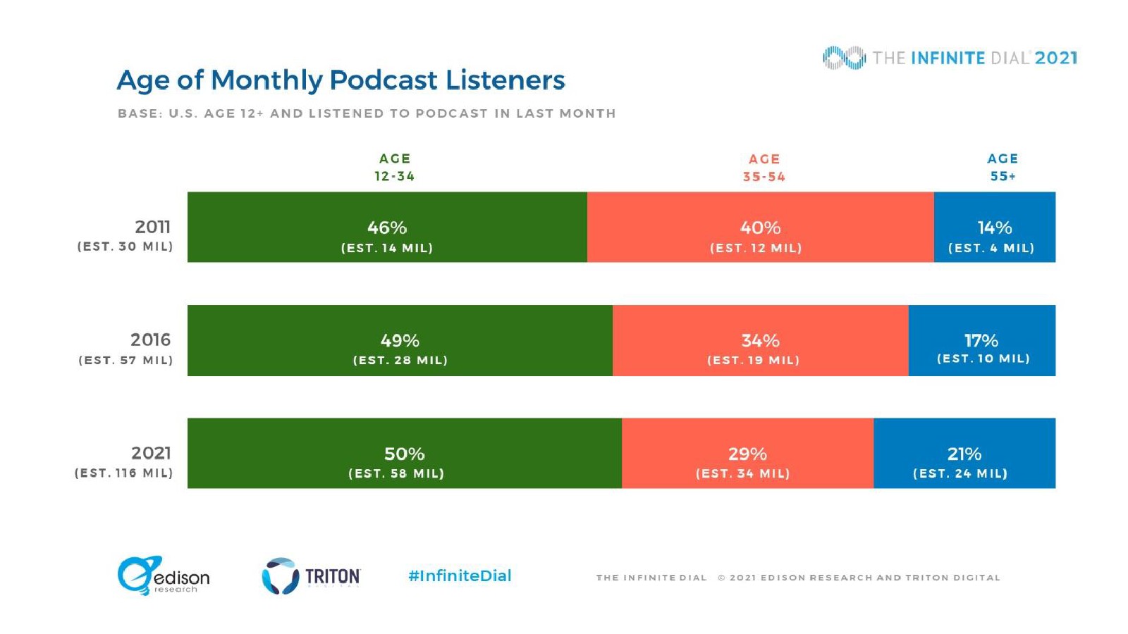 Edison发布了“2021年数字报告”。大约8000万美国人(28%)现在每周收听播客,比2020年增长了17%。现在,每月收听播客的观众比以往任何时候都更加多样化:每月收听播客的人中,57%是白人、16%是拉丁裔、13%是非裔美国人、4%是亚裔,还有10%是其他民族。