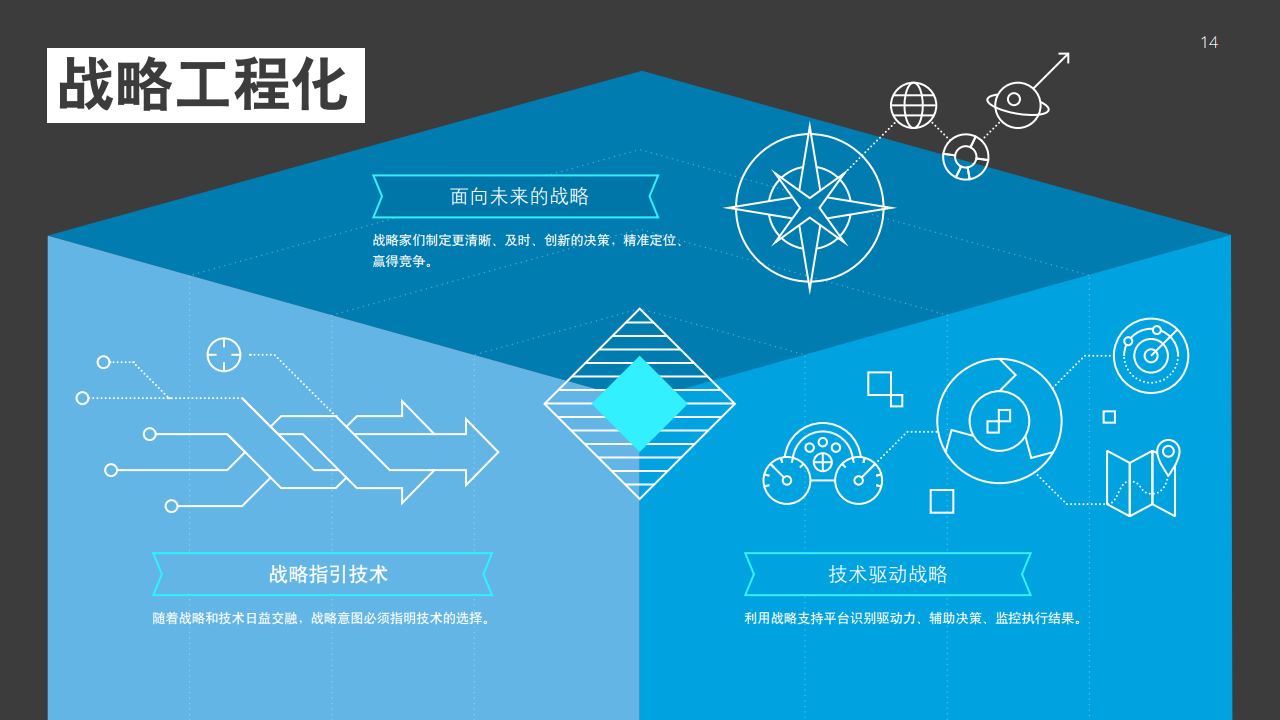 一、 企业的核心:战略工程化、激活核心系统、解放供应链,从而确保组织战略和技术战略协同、一致,方可成功。