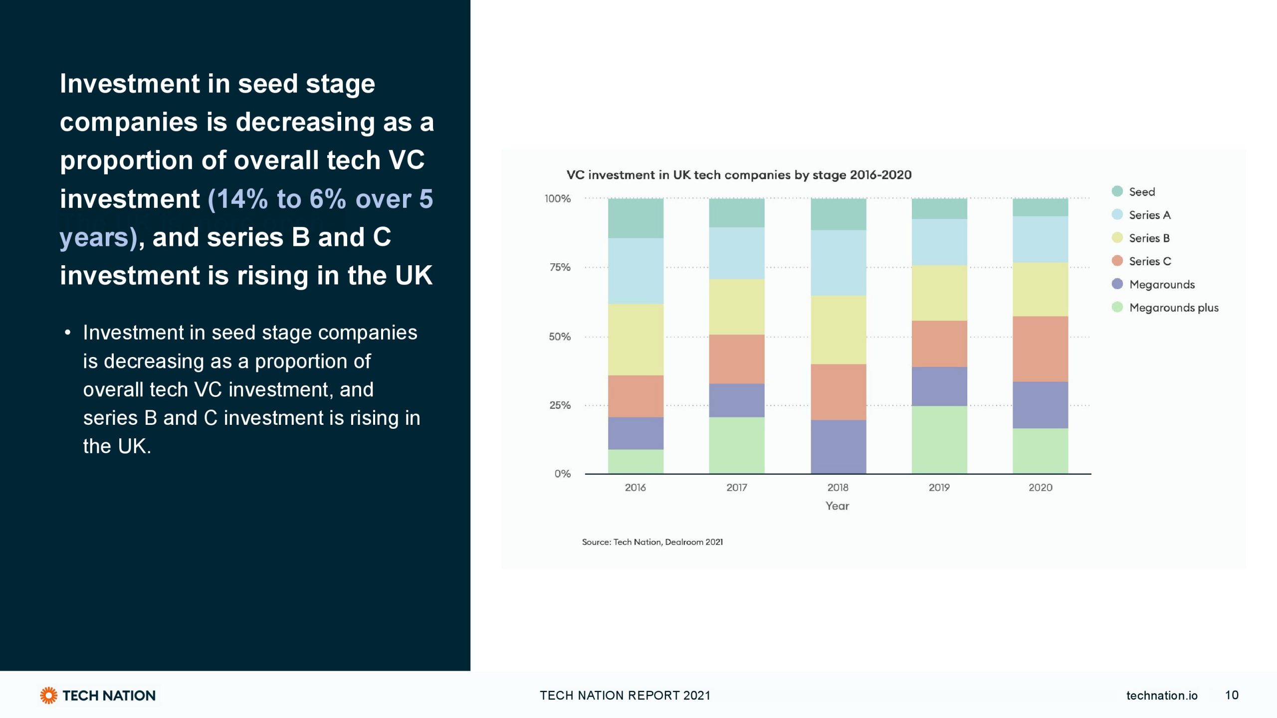 自2016年以来,来自英国境外的投资稳步增长。2019年达到顶峰,占风险投资总额的69%,2020年下降6%。去年,英国国内投资占总投资的比例略有提高,为37%。尽管如此,英国的科技生态系统对国际投资者来说仍然是一个具有吸引力的目的地。