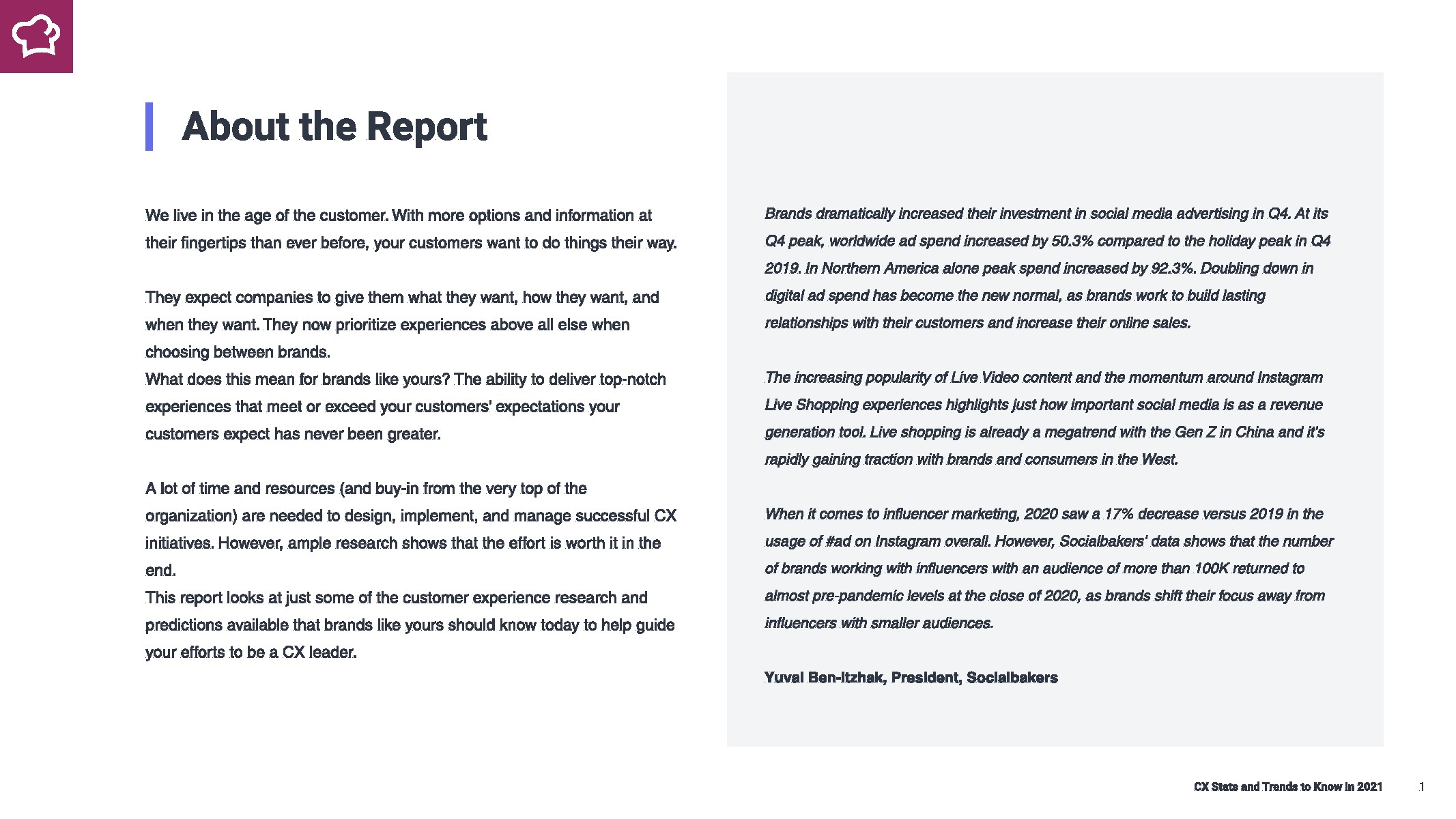 报告关注一些现有的客户体验研究和预测,帮助品牌成为CX领导者。