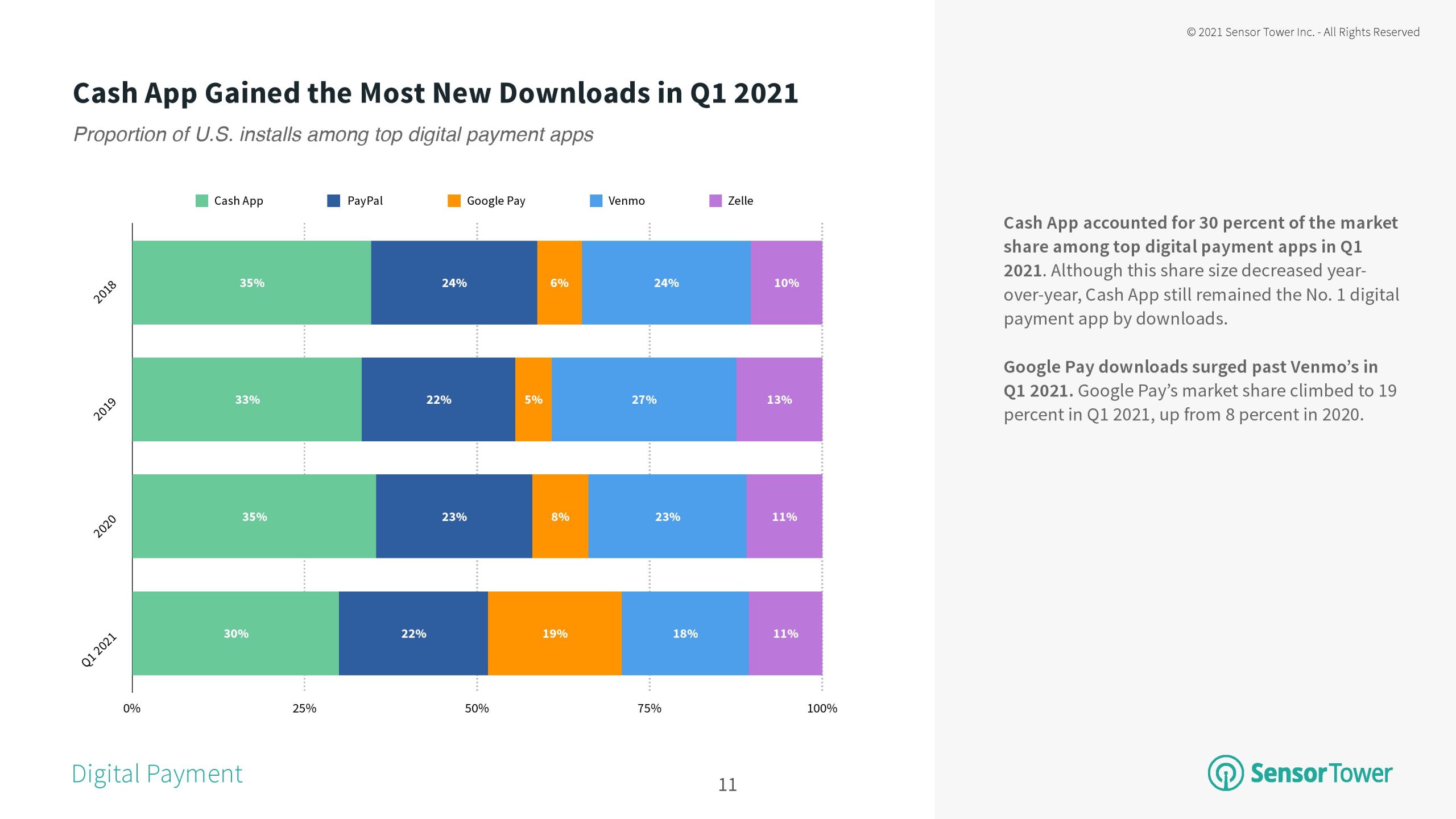 自2018年以来,Cash在数字支付和转账应用中一直高居榜首,今年第一季度,它在美国App Store和Google Play中继续领跑这一类别。