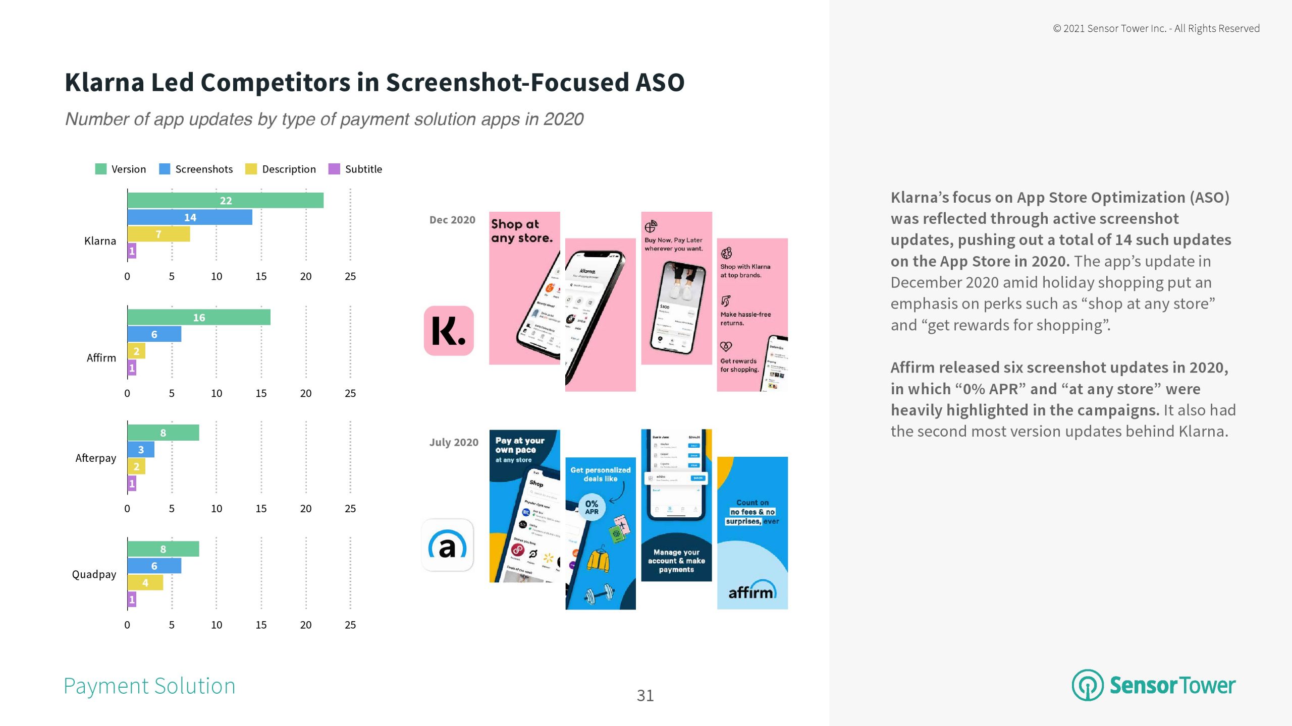 尽管Klarna仍然是下载量最大的支付解决方案应用,但竞争对手Afterpay的吸引力正在增强。今年第一季度,这款应用的市场份额从2020年的约25%增长到26%。