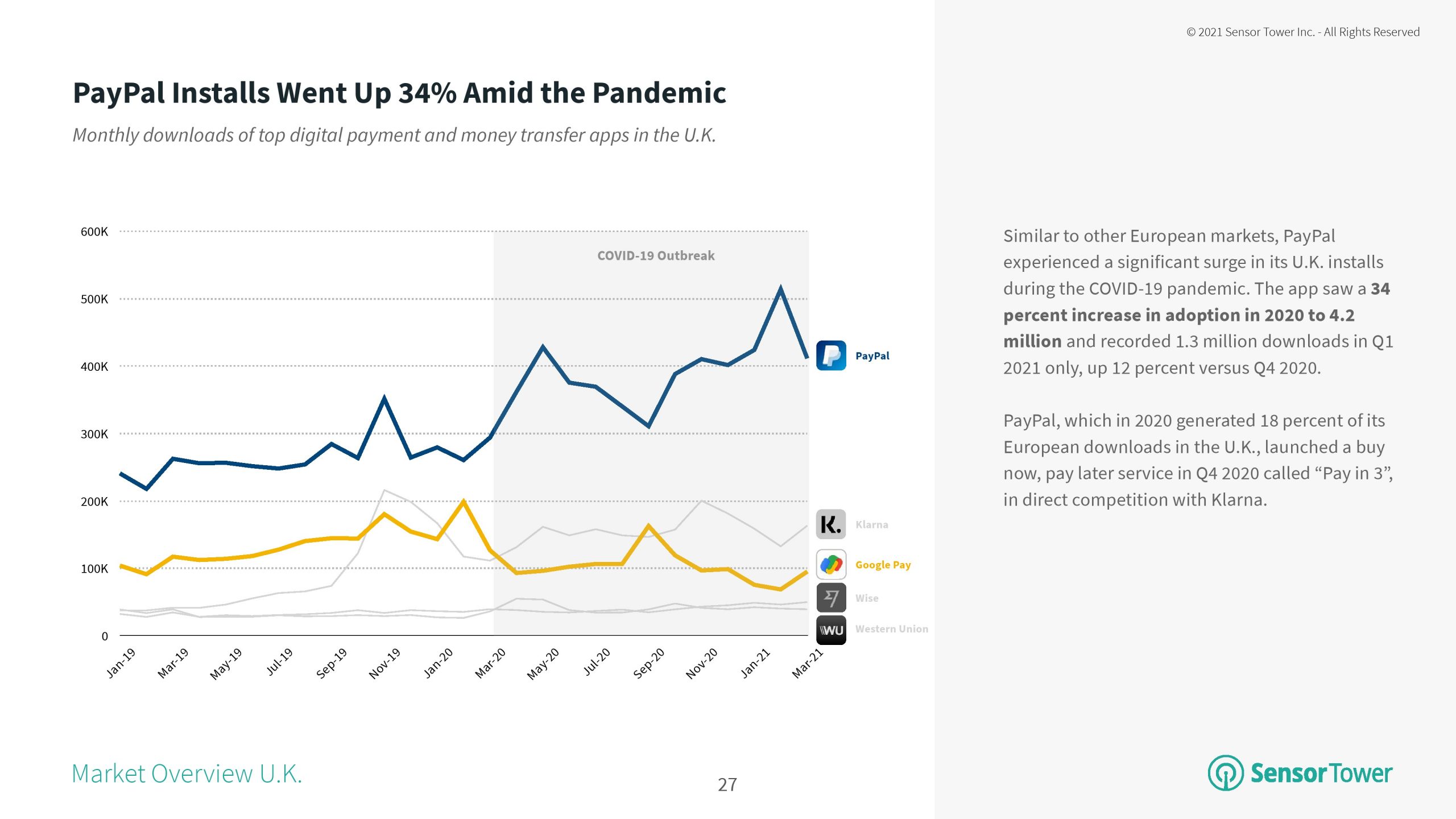 2021年第一季度,顶级支付应用程序安装量超过3000万次