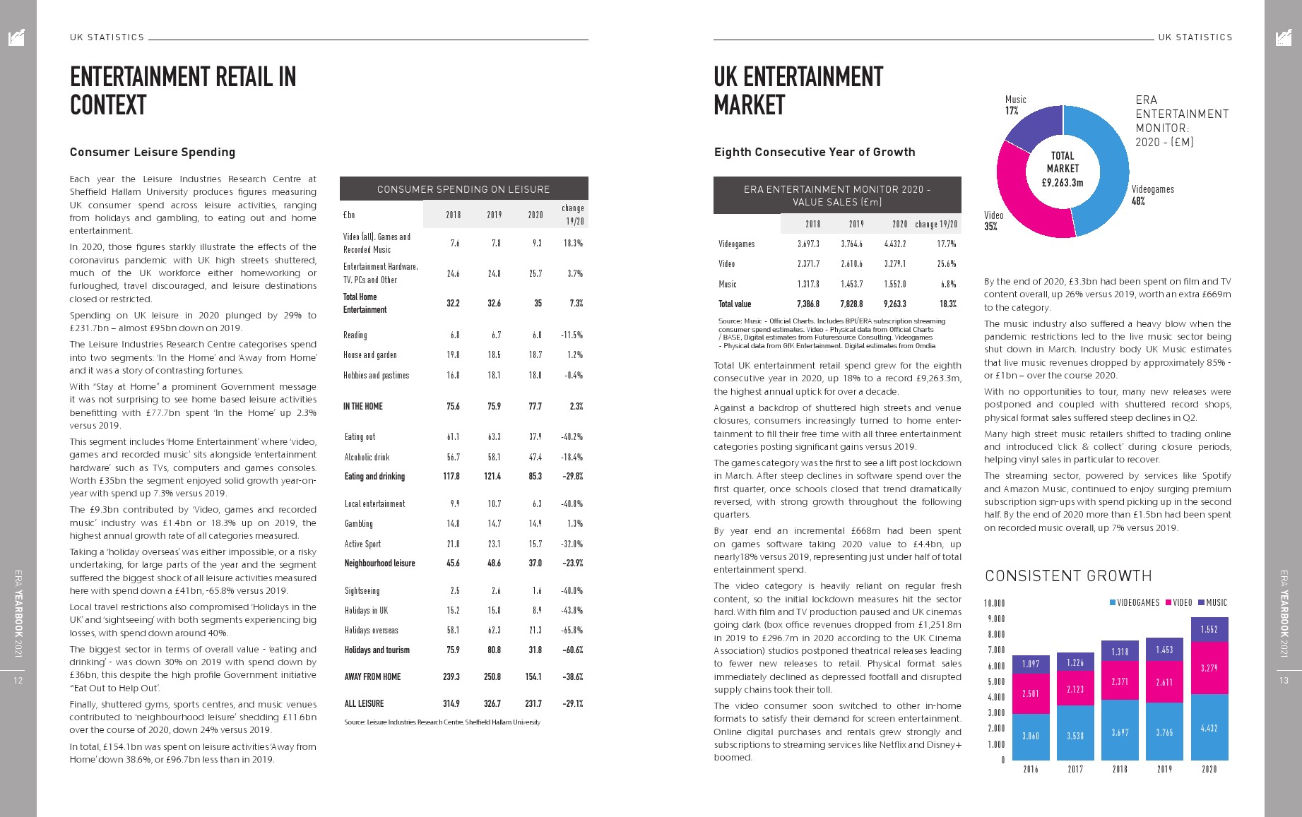 英国娱乐零售支出总额在2020年连续第八年增长(18%),并创下9.2633亿英镑的纪录,是十多年来年增长率最高的。