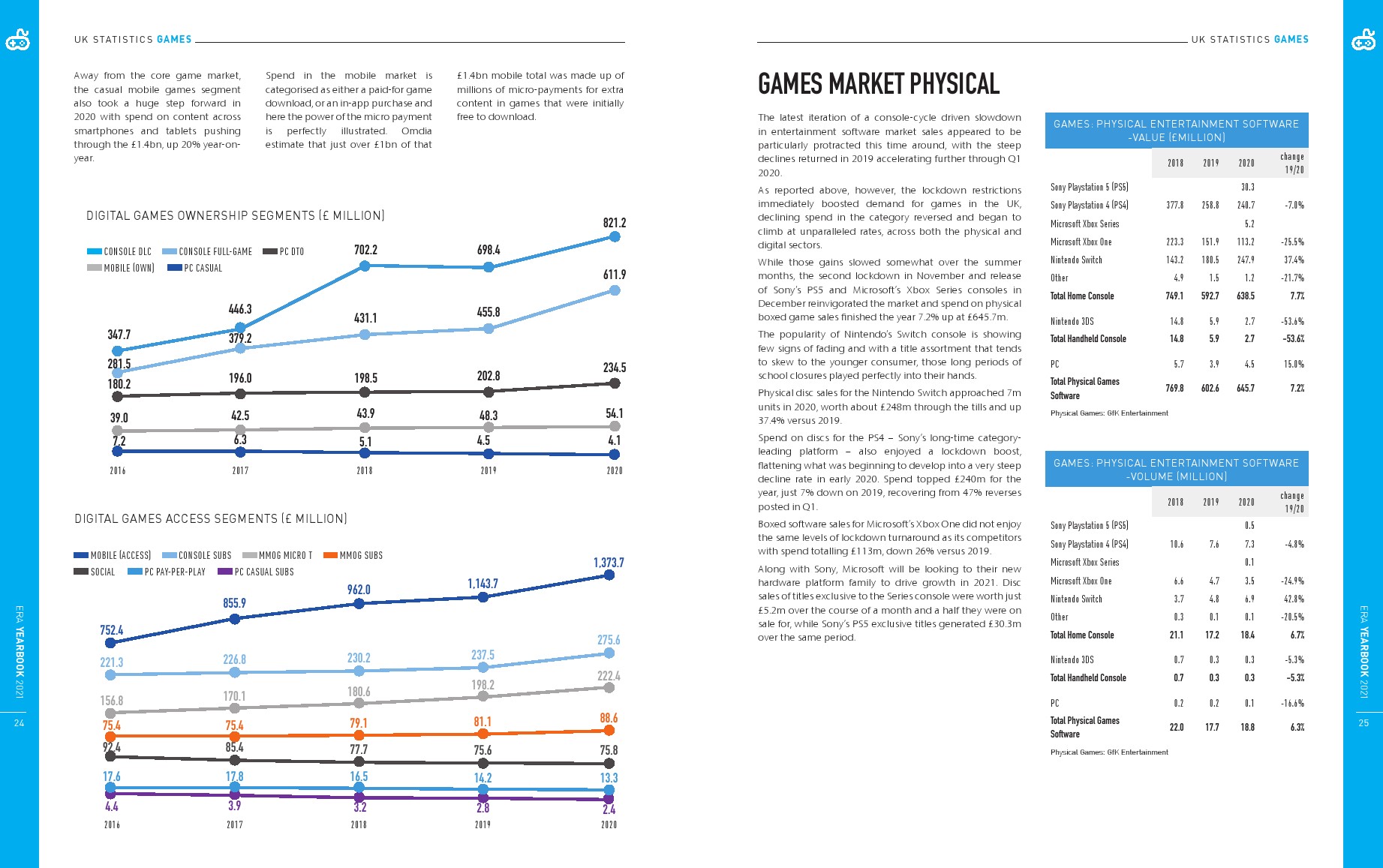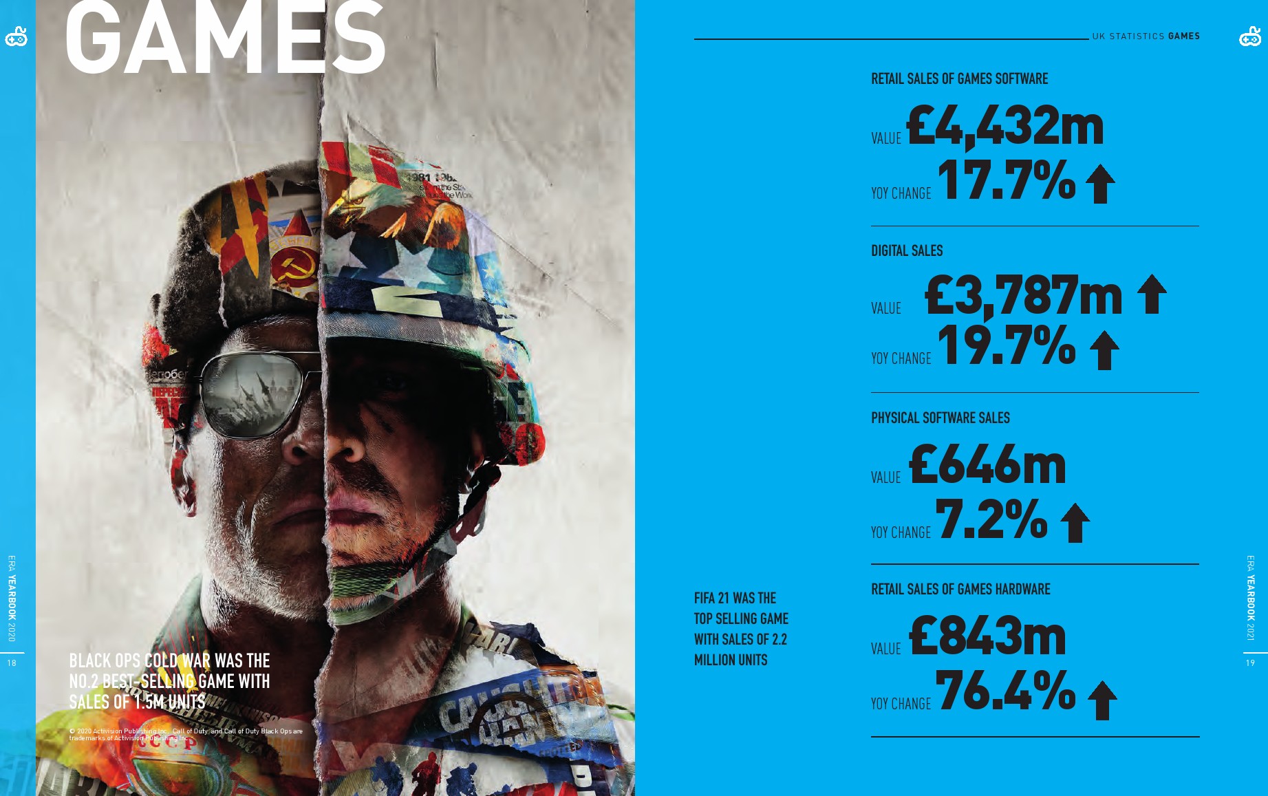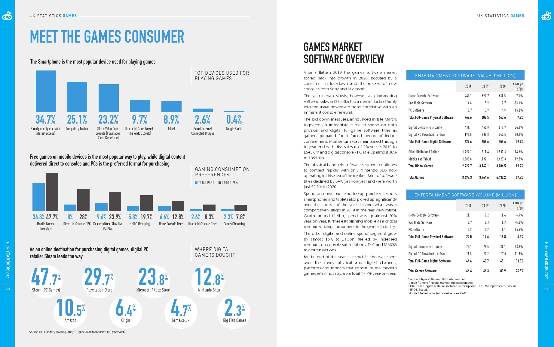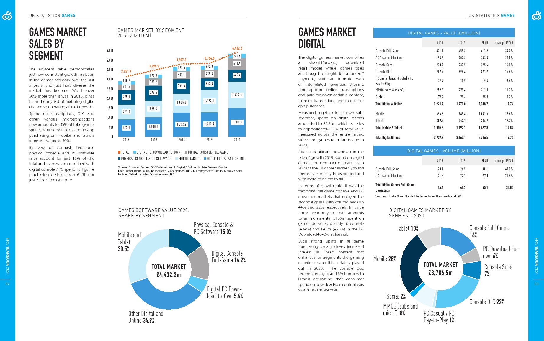 截至年底,游戏软件支出增加了6.68亿英镑,其2020年的价值达到44亿英镑,较2019年增长了近18%。