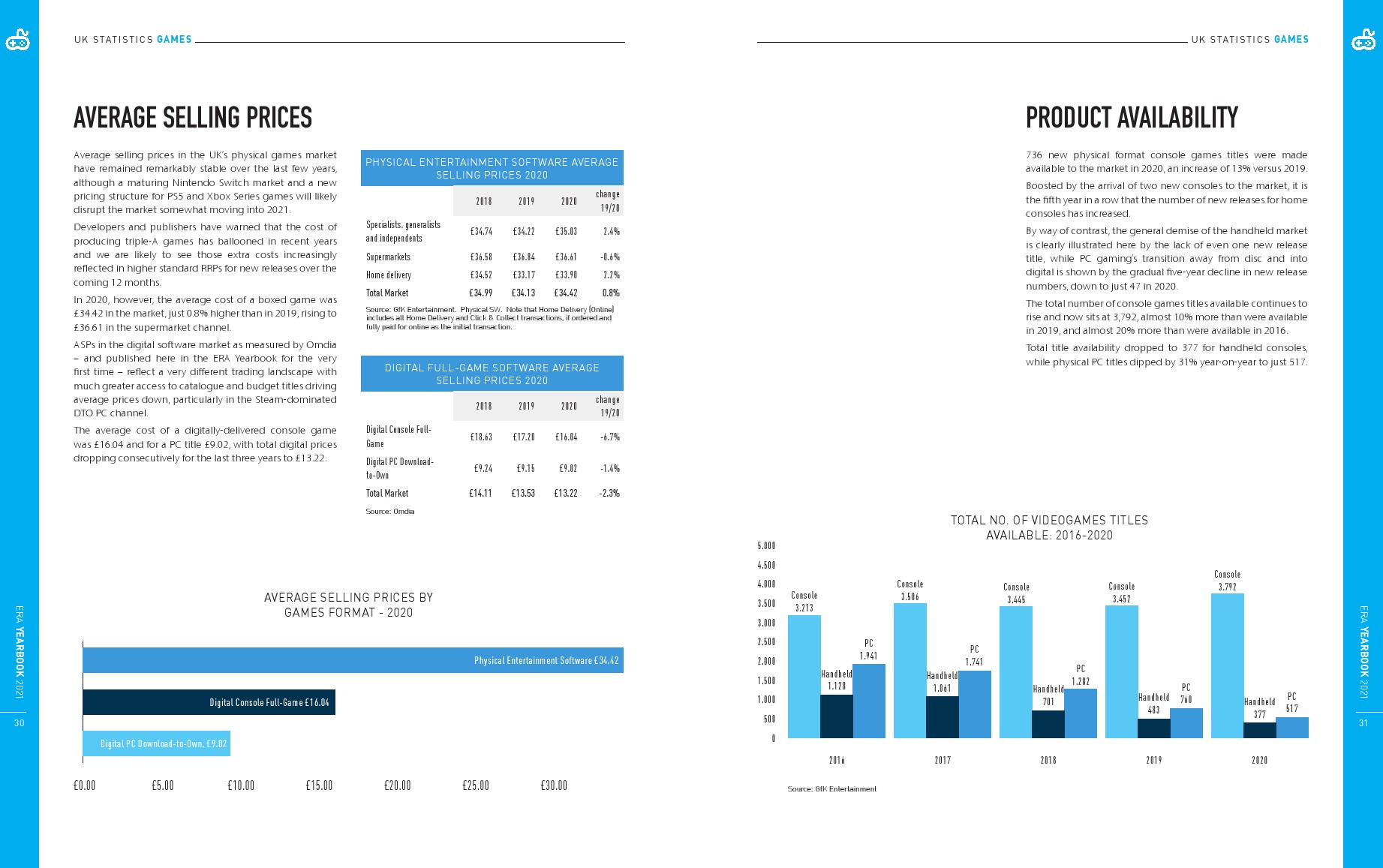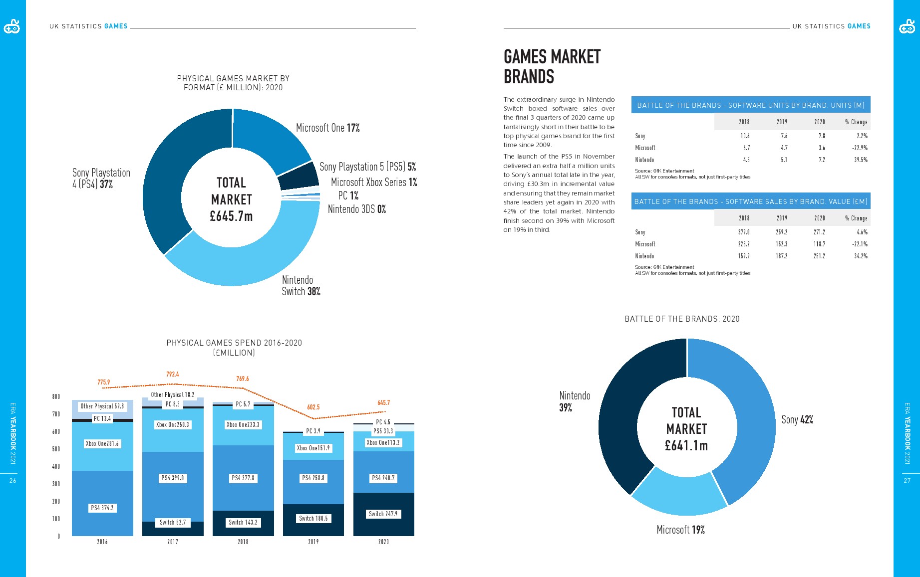 根据GfK Entertainment的数据,2020年英国实体游戏支出6.457亿英镑,较2019年增长7.2%。