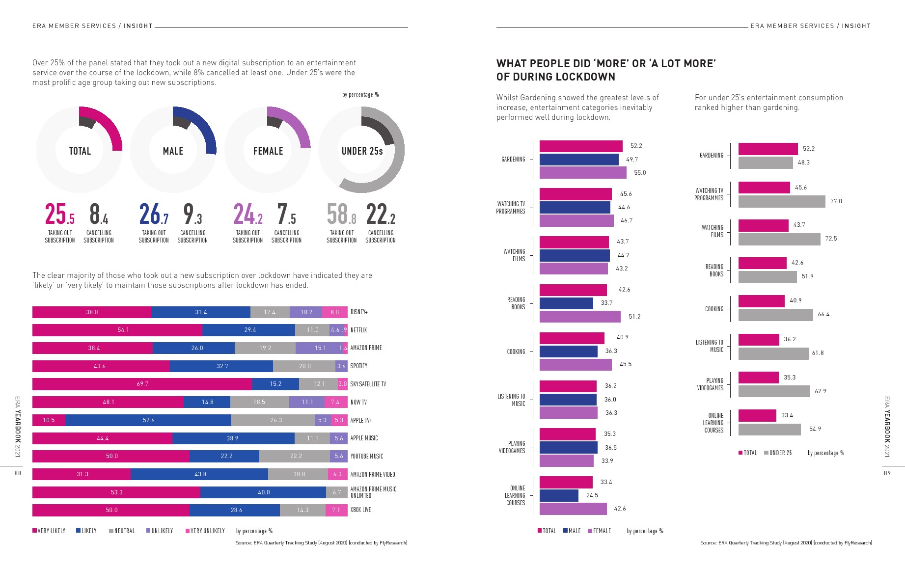 2020年,消费者长期呆在家里,商业街零售商要么关闭,要么遵守严格的社交距离规定。便利性成为封锁期间选择娱乐的更重要因素,数字消费的长期趋势加速发展。