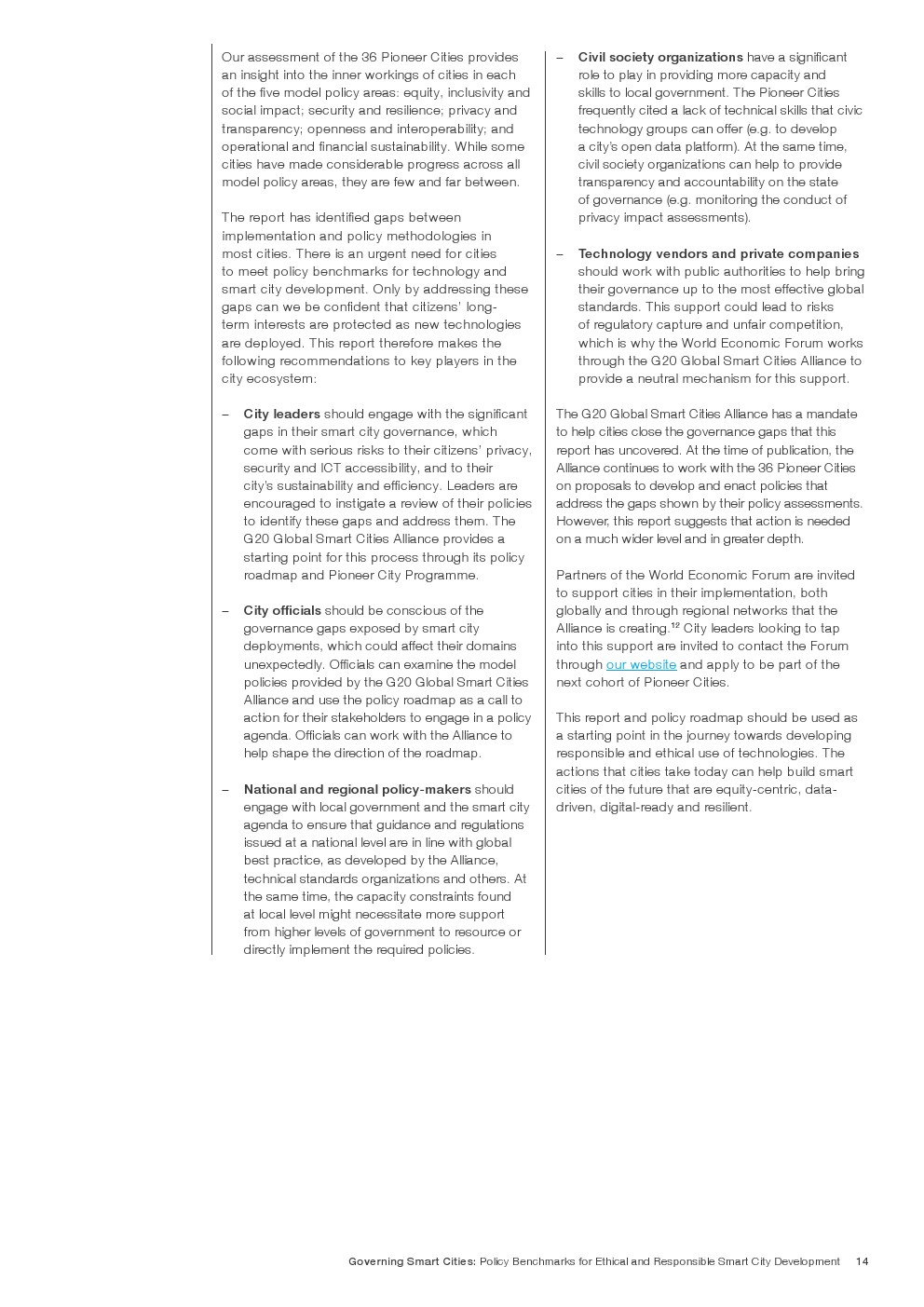 报告最后呼吁利益相关者采取行动,包括城市领导人、决策者、民间社会和智能城市技术供应商。