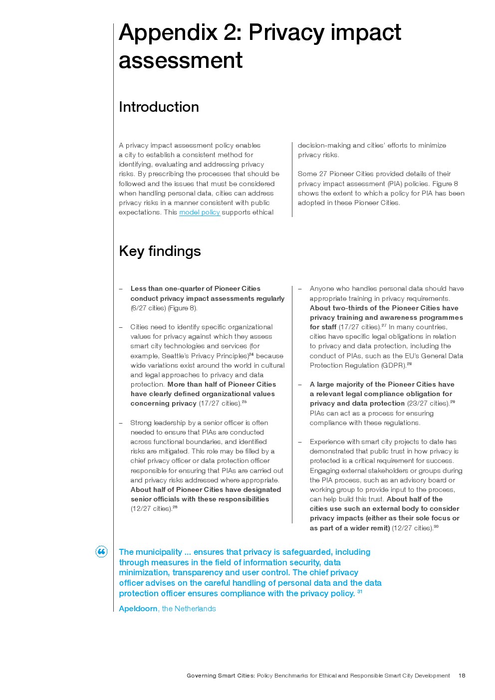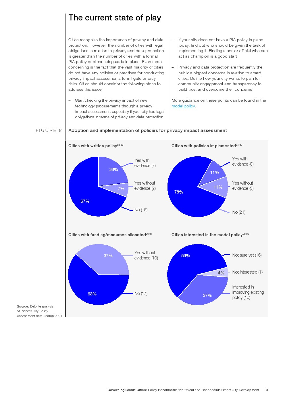 –80%的城市承认了隐私和数据保护的法律义务,不到25%的城市在部署新技术时进行隐私影响评估。