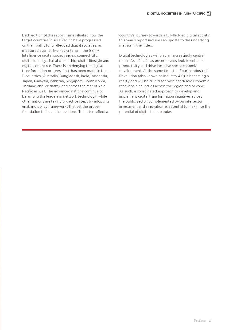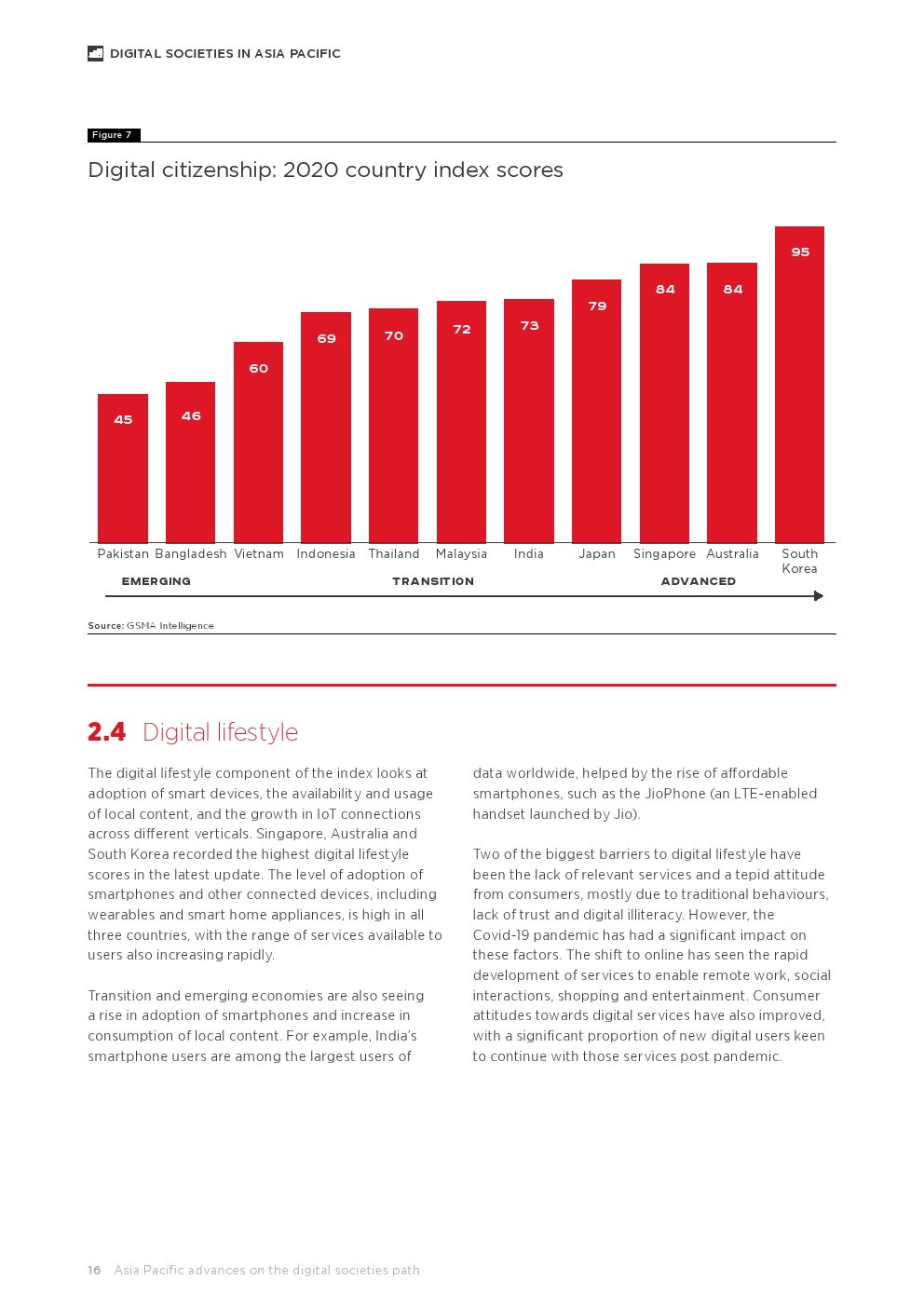 GSMA发布了“2021年亚太地区数字社会报告”。这是第六个年度报告,跟踪了11个国家(澳大利亚、孟加拉国、印度、印度尼西亚、日本、马来西亚、巴基斯坦、新加坡、韩国、泰国和越南)在数字社会关键方面的进展:数字身份、数字公民身份、数字生活方式、,和电子商务,以更好地反映当今的技术。