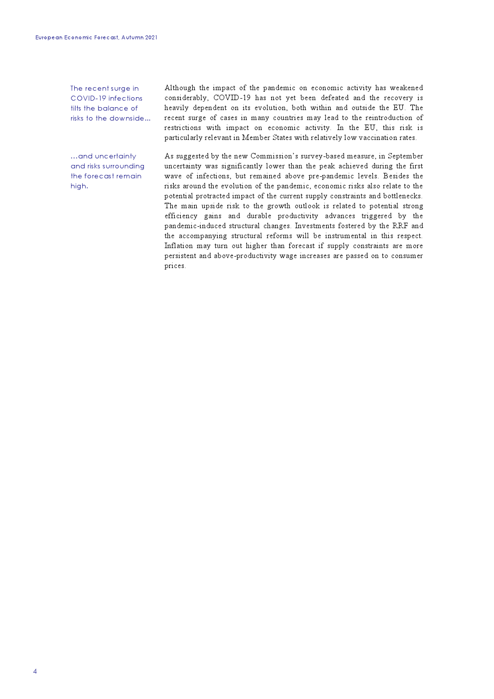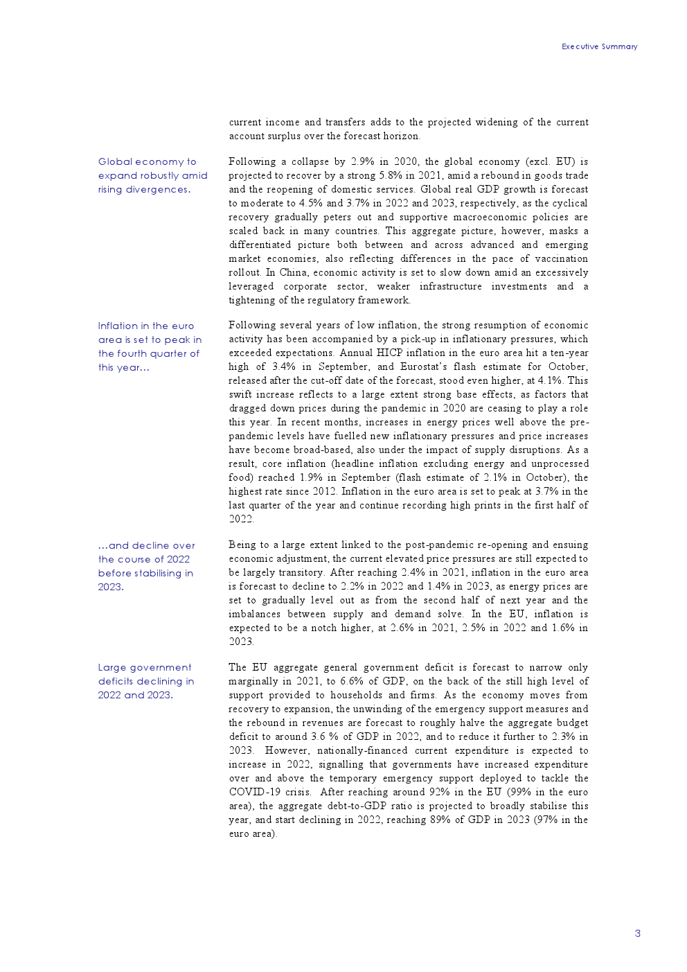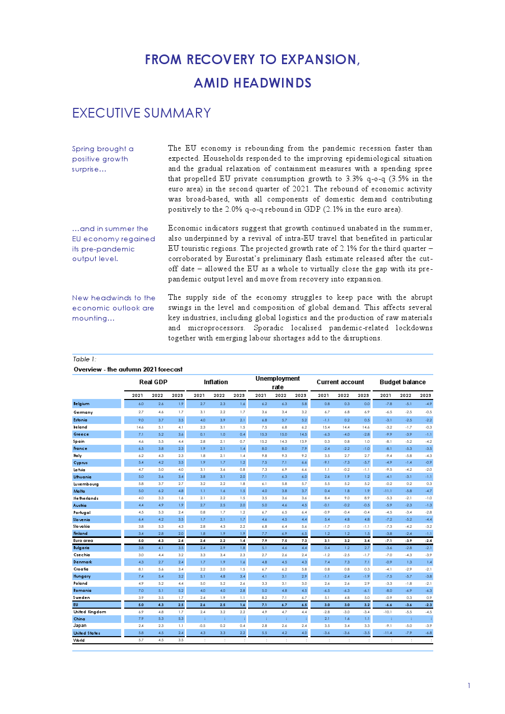 欧盟委员会发布了“2021年秋季欧洲经济预测”,主要发现包括: