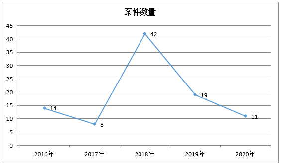 白皮书显示,上海二中院于2016年1月1日至2020年12月31日审结的股东资格确认类案件,去除管辖、执行、指令审理以及纯粹股权转让类纠纷,有效案件共计94件, 其中,一审案件1件,二审案件93件。从结案年份来看,2016年为14件,2017年为8件,2018年为42件,2019年为19件,2020年为11件。2018年出现峰值,2019年、2020年持续回落。