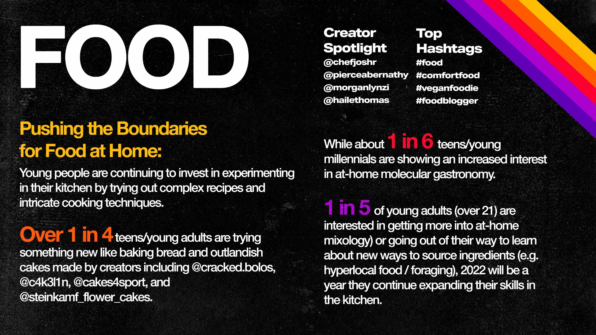年轻人通过尝试复杂的食谱和复杂的烹饪技术,继续在厨房里进行试验。