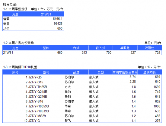 原标题:2021年燃气灶电商周度数据报告--W51 来源:奥维云网