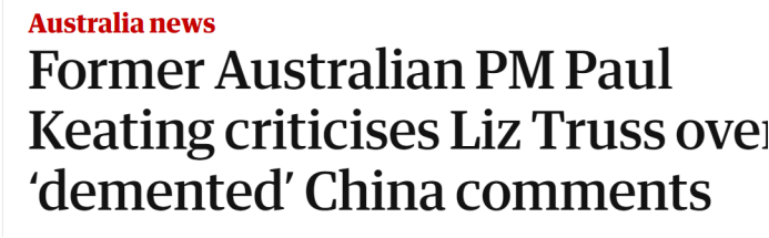 《卫报》:澳前总理保罗·基廷批评利兹·特拉斯对华“疯狂”言论