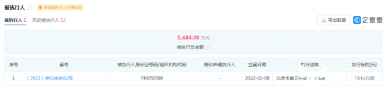 据悉,富力(北京)地产开发有限公司于2022年2月成为了被执行人,案号为(2022)京03执恢62号,执行标的为5484万元,立案日期为2022年02年08日,执行法院为北京市第三中级人民法院。