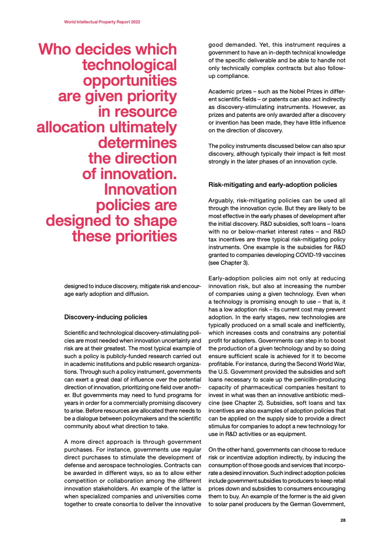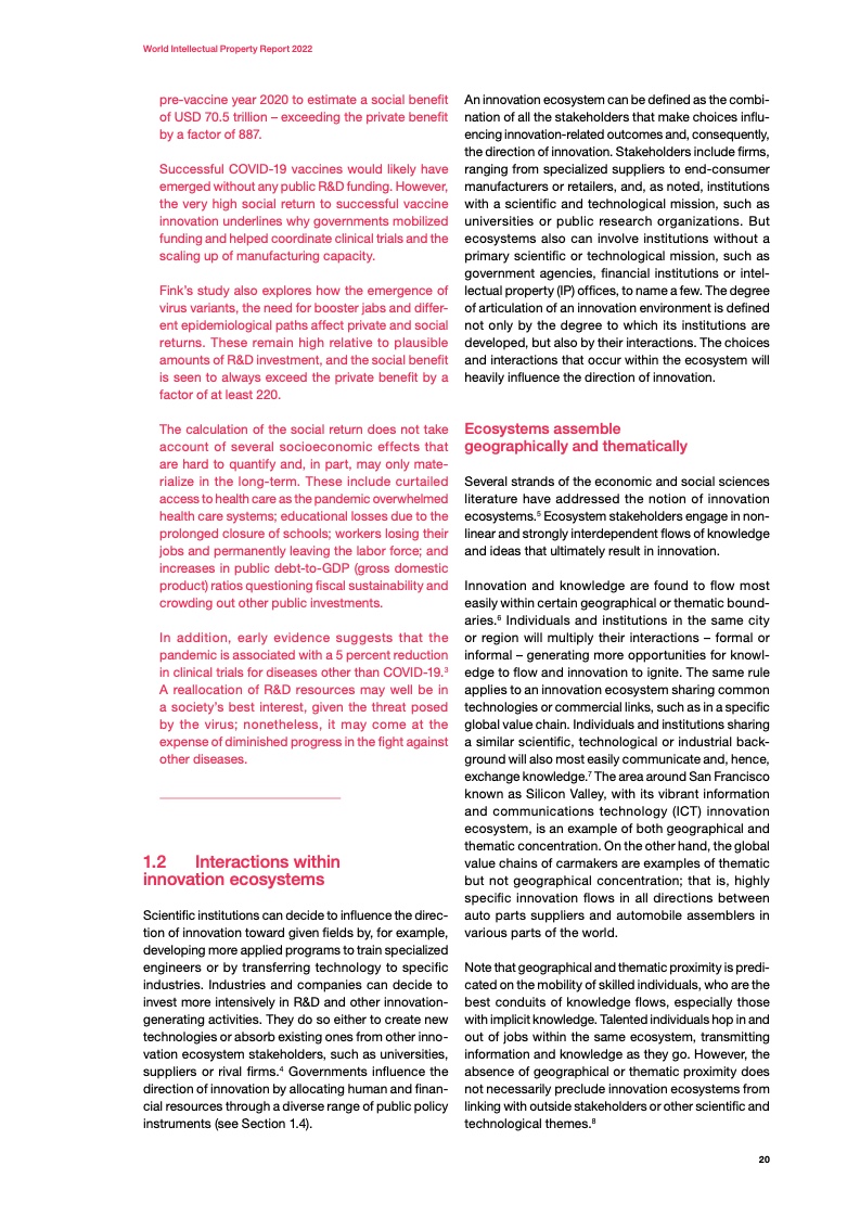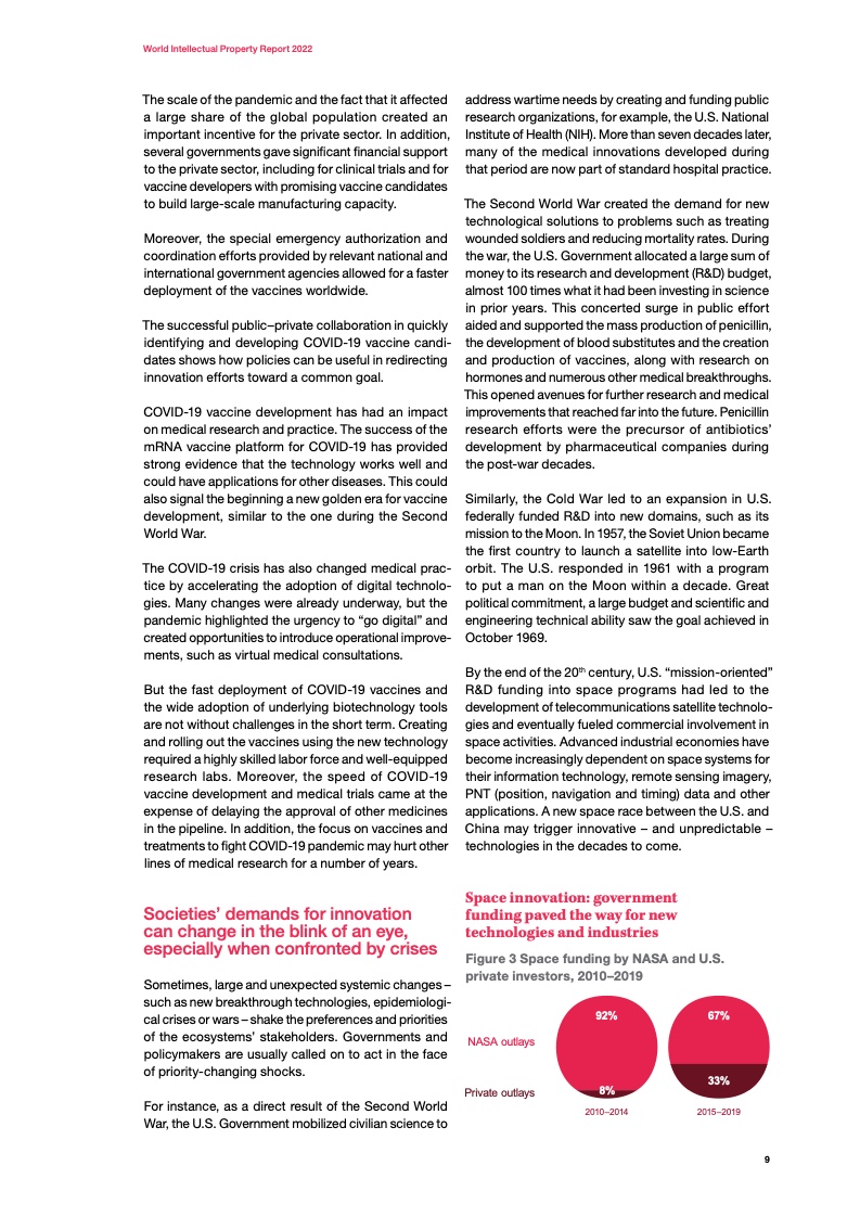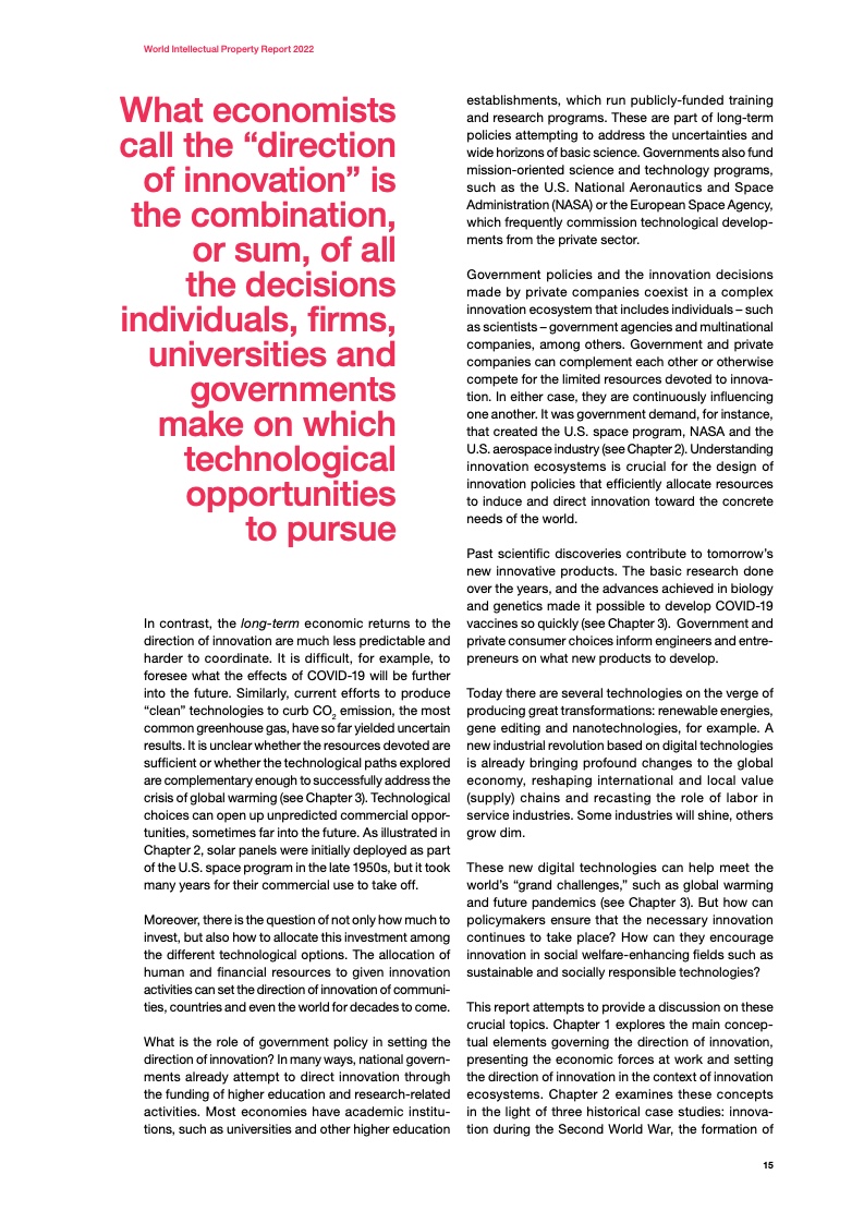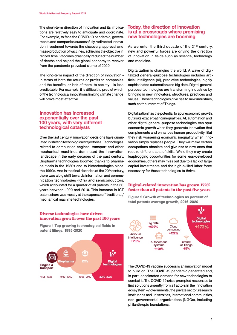 《世界知识产权报告》发现,人类的创新不可避免,但其结果却不一定:创新的方向是企业家、研究人员、消费者和决策者多方面行动的结果,社会的需求可能迅速改变,正如在当前病毒快速传播的新冠大流行病期间一样。