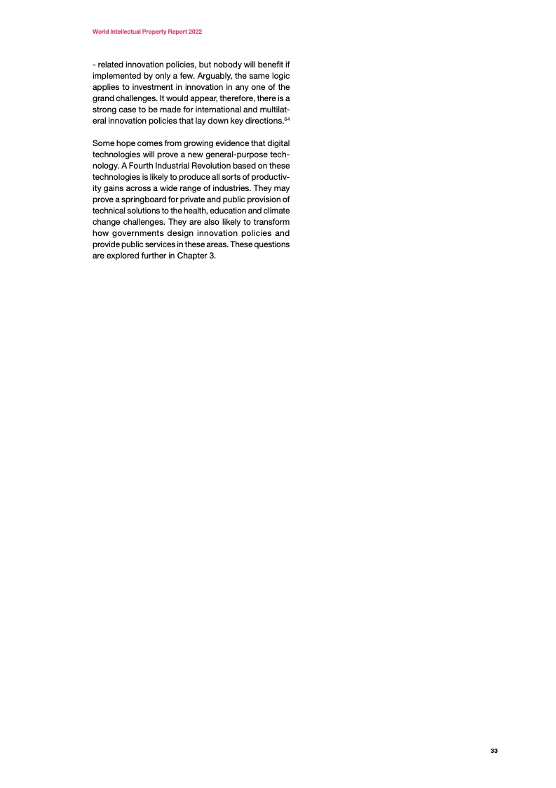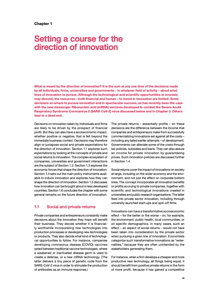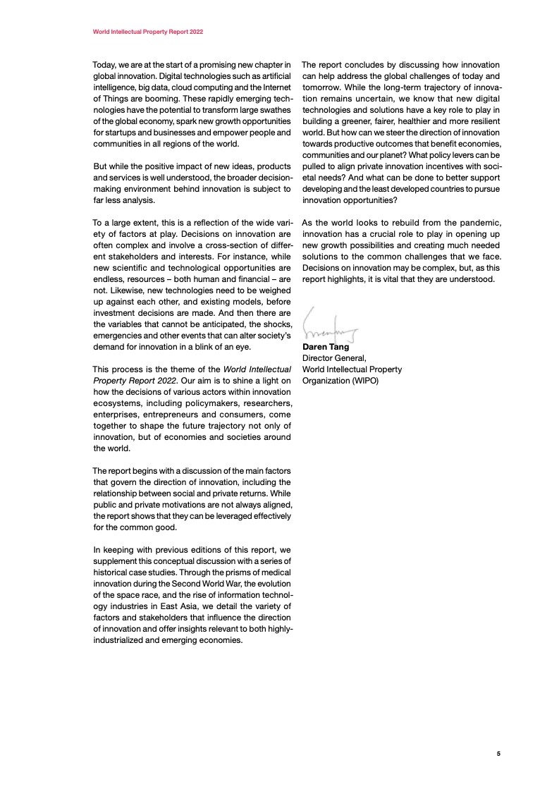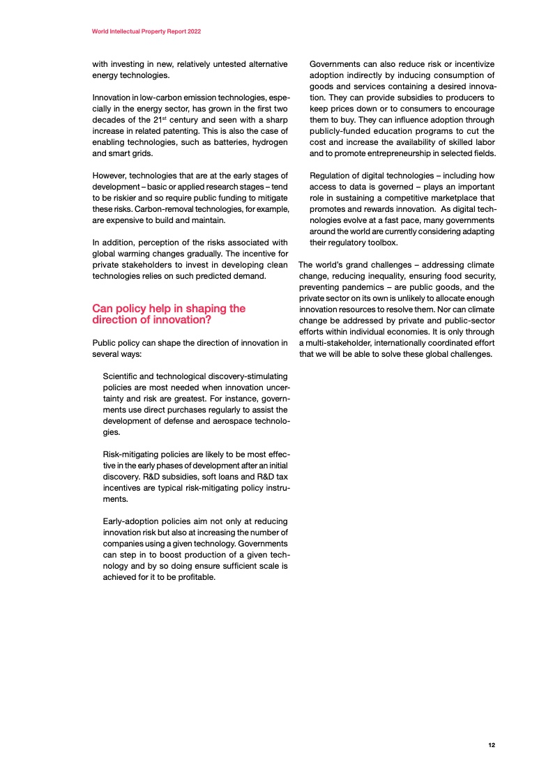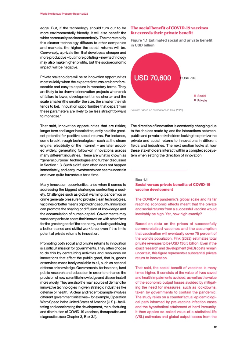 《世界知识产权报告》发现,人类的创新不可避免,但其结果却不一定:创新的方向是企业家、研究人员、消费者和决策者多方面行动的结果,社会的需求可能迅速改变,正如在当前病毒快速传播的新冠大流行病期间一样。