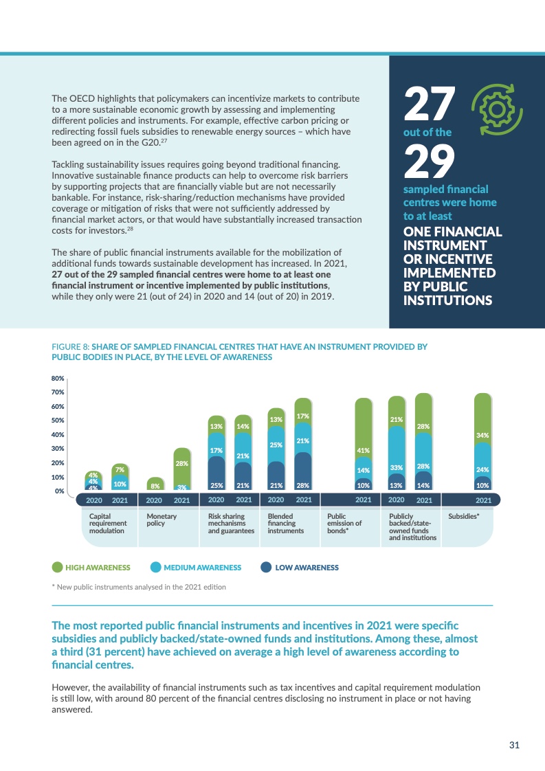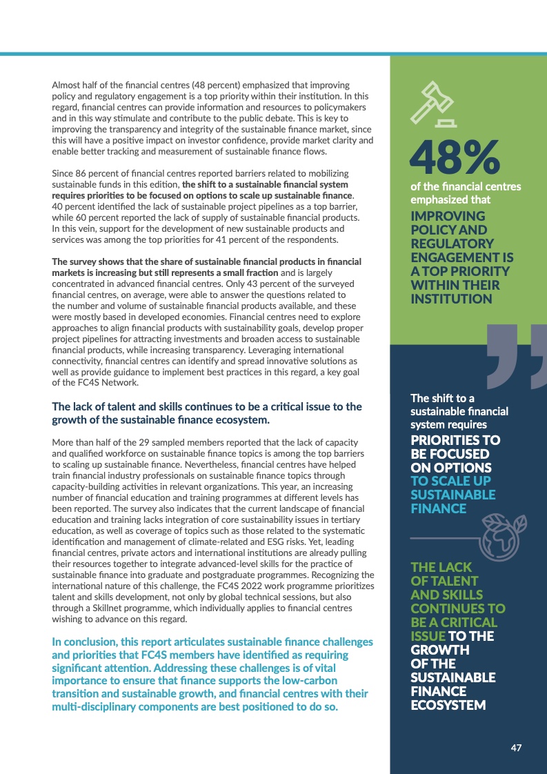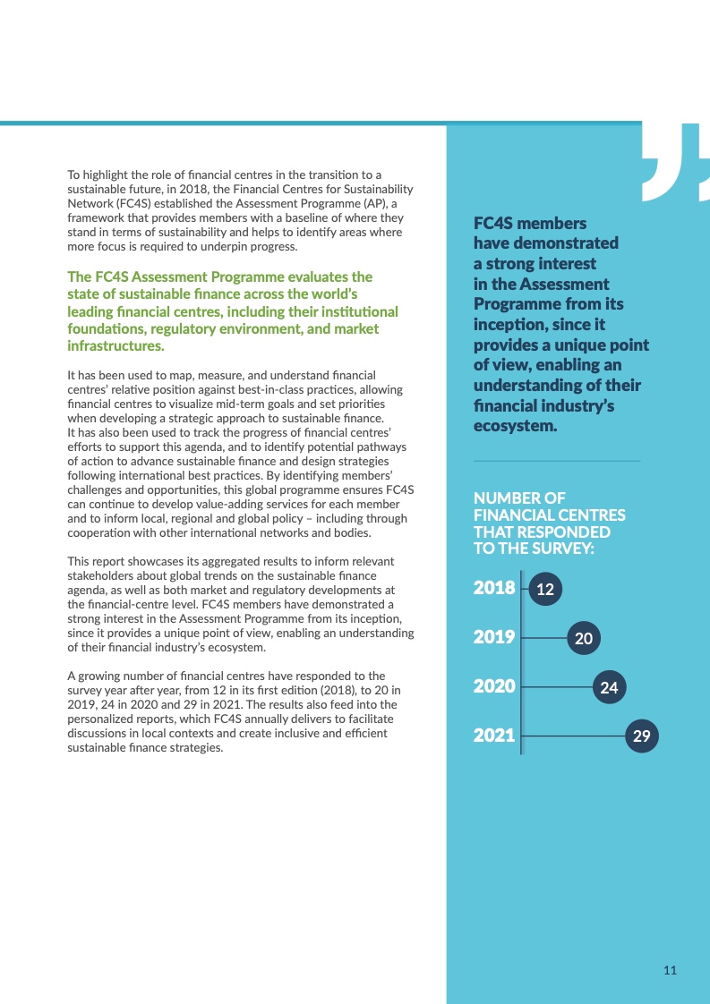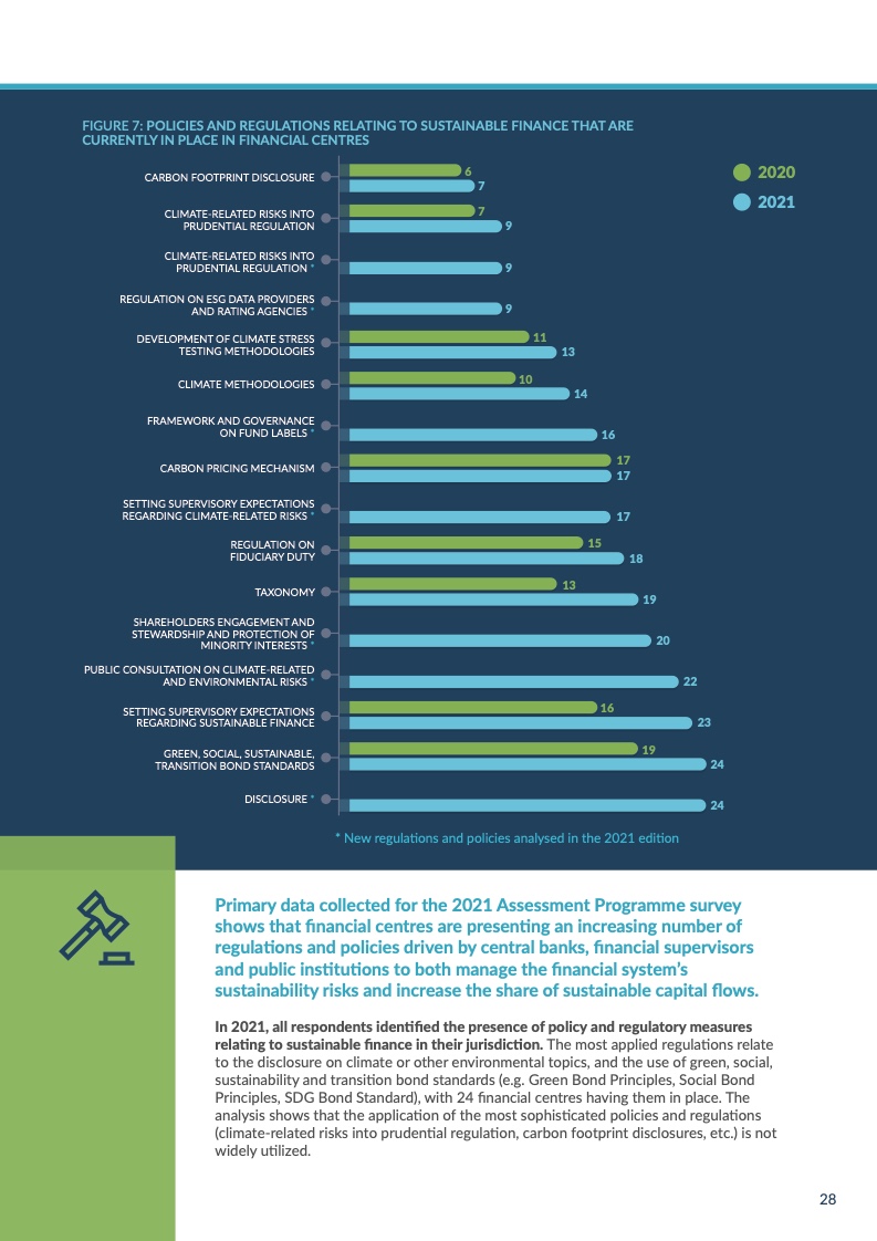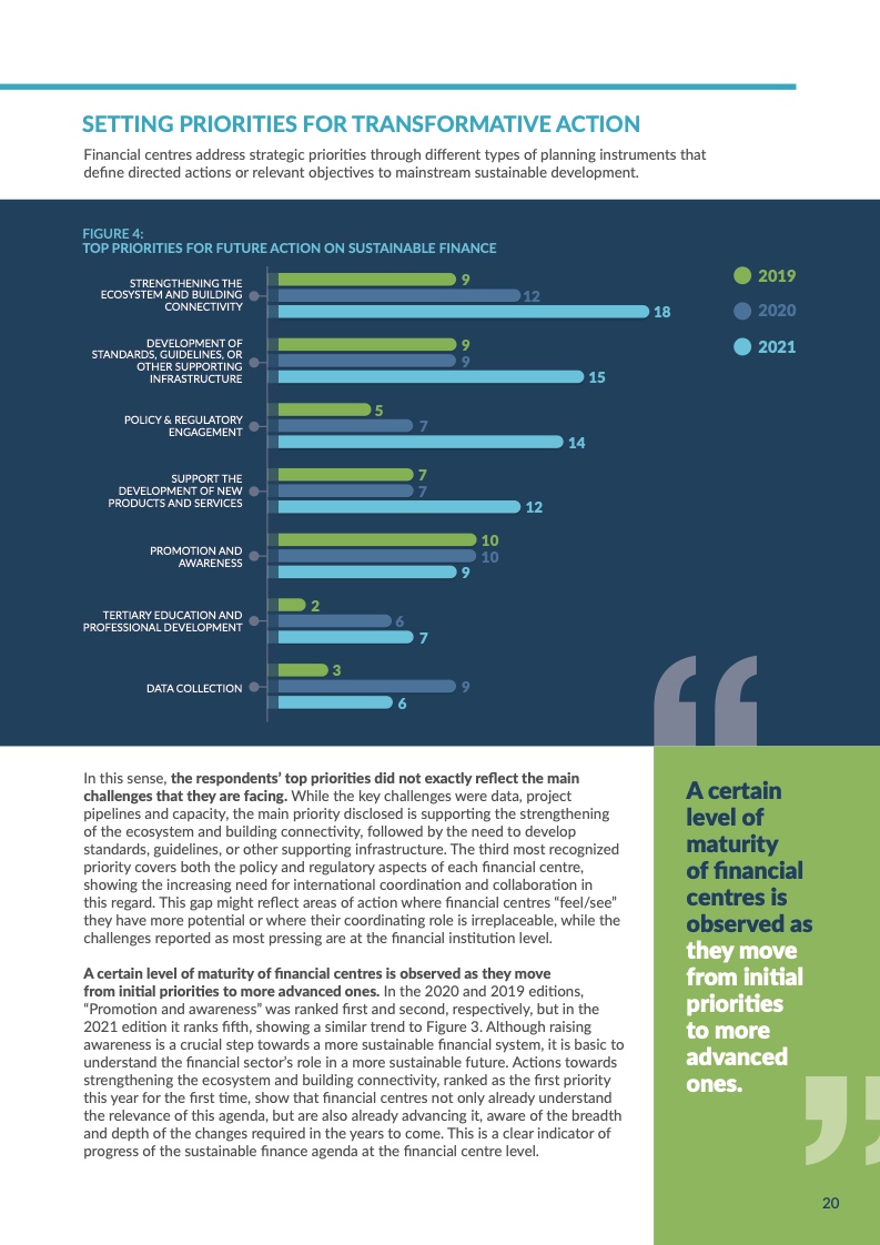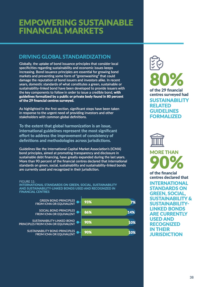 联合国可持续金融中心网络(FC4S)正式发布2021年度金融中心可持续金融发展评估报告。对全球金融中心城市的可持续金融发展情况进行追踪整理,把握全球可持续发展的动向,总结并分享优秀发展经验,是FC4S这一评估项目的主要目标。2021年,全球29个金融中心城市参与此次评估的问卷调查。北京、深圳和香港均对此次评估报告的数据分析予以大力支持、为报告的筹备和撰写提出了宝贵意见。