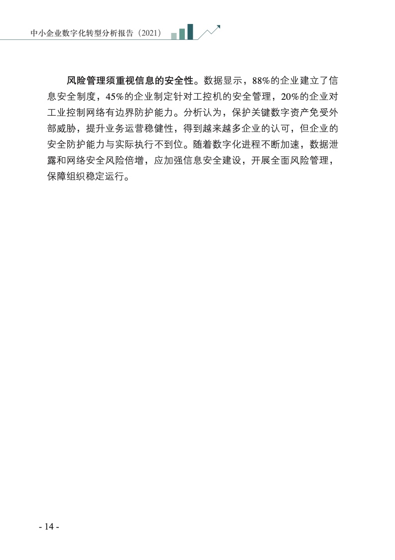 分析认为,我国中小企业数字化转型取得积极进展,但绝大部分企业仍处于数字化转型的初级阶段,数字化转型之路道阻且长。同时,也有越来越多的企业从探索实践迈向了深度应用,这些优秀的企业树立起示范标杆。