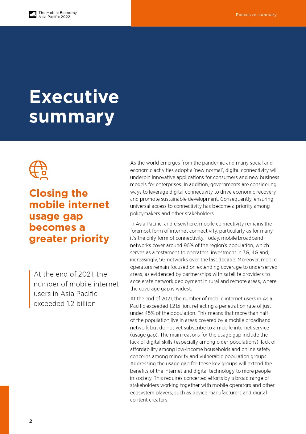 GSMA发布了“2022年亚太地区移动经济报告”,消除移动网络使用差距成为更大的优先事项。