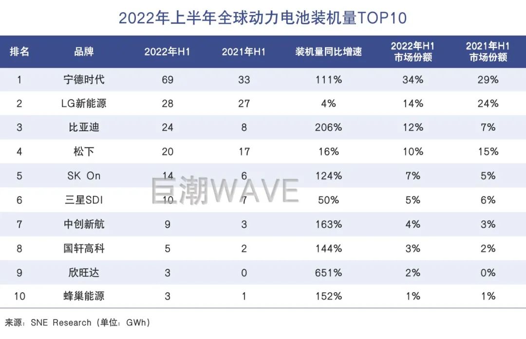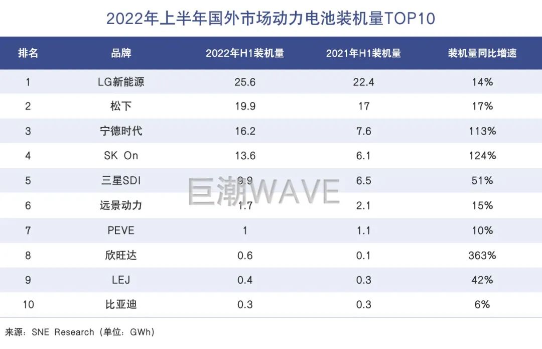 然而,有一个非常关键的进步和亮点,却被批评的舆论所忽视——凭借“内卷”铸就的竞争力,国内动力电池企业正在改写全球动力电池市场的竞争格局。SNE Research数据显示,今年上半年,全球动力电池装机量前20企业中,有15家是中国企业;在增速超过100%的12家动力电池商中,有11家为中国企业。数据背后反映出,中国动力电池企业已经由内卷走向“外卷”,正在开启更大的市场和未来。出海抢订单中国动力电池企业之所以可以霸榜全球排名,离不开国内新能源汽车市场的蓬勃发展。截至2021年末,我国新能源汽车产量连续7年世界第一。乘联会数据显示,2022年上半年,中国新能源乘用车在世界新能源车中的市场占比达59%。也就是说,得中国市场者可得天下。不过国内动力电池企业并未满足于中国市场,在巩固国内市场份额的同时,也在加快走向海外。最为突出的代表自然是有“宁王”之称的宁德时代。2018年特斯拉在中国建厂后,宁德时代成功挤掉了松下电池,打入了特斯拉的供应链,这大大加速了其登顶全球最大动力电池企业宝座的步伐,也使得其成为国内全球化程度最高的动力电池企业。财报数据显示,宁德时代国际业务占整体营收的比例在近年来迅速上升。2018年,境外收入占宁德时代总营收3.53%,去年末该数据已经升至约21.4%。而SNE Research数据显示,今年上半年,宁德时代海外动力电池装机量约占其总出货量的23.91%。相比之下,国内的其他动力电池企业虽然体量远不及宁德时代,但也在加速出海步伐,争抢国际车企的订单:如国轩高科目前已经和博世、塔塔集团、大众汽车集团、VinFast等汽车厂商达成战略合作。根据规划,其将于2025年实现年产能为300GWh的目标,来自海外生产基地的产能为100GWh;孚能科技则与戴姆勒深度合作,目前其为奔驰 EVA2 平台研发的电池已经量产下线,其首款纯电动车型 EQS 也已经在北美上市;亿纬锂能获得了包括戴姆勒、宝马、现代起亚、捷豹路虎等多家国际一线主机厂客户的青睐。欣旺达也已成功进入雷诺的供应商体系,并计划与日产联合研发下一代电动汽车电池。与此同时,近期欣旺达与国轩高科都在积极推进在瑞士等海外证券交易所上市,也是其迈向全球市场的重要体现,有望借此提升国际知名度,加速其海外业务拓展。