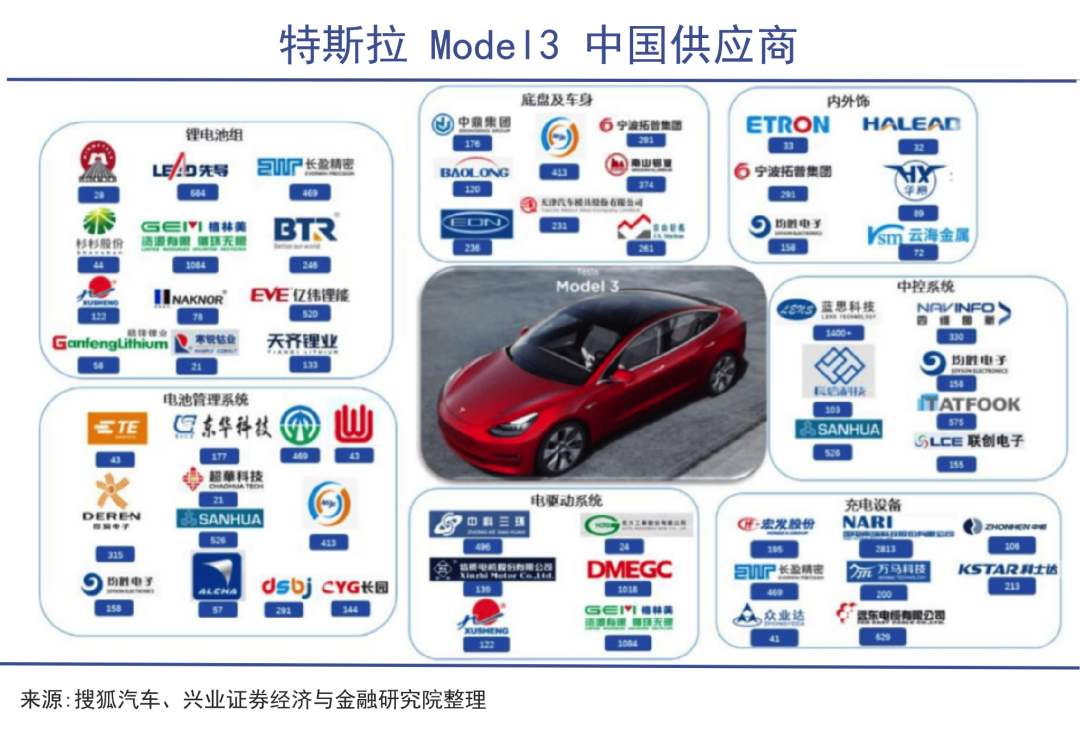 A股汽车零部件板块走势(2000年至今)尤其是以宁德时代为首的动力电池产业链,从上游的钴、锰、镍、锂,到中游的正负极、电解液、隔膜、电芯、PVC膜、线束,到下游的电池模组,已然成为世界最具竞争力的产业集群,支撑着中国新能源汽车的制造。整体上看,特斯拉“入伙”中国之后,许多中国伙伴扭转了此前连年亏损的命运。这正是汽车配件产业价值链条向中国流动的早期表现。纵观全球,新能源汽车的历史洪流不可阻挡。这是中国汽车产业从未有过的大变局,同时也是整条产业链的大机遇。写在最后从孱弱到用市场也换不来技术,到“没有中国零部件,就造不出电动车”,这是中国汽车零部件产业的一次时代跃迁。一辆汽车大约有3万个零部件,每一个组件都是不可或缺的细胞。考虑到特斯拉100%国产化的承诺,未来中国企业将会覆盖到新能源汽车的每一个零部件,包括各类芯片和处理器。而如果每一个零部件都能顺利实现国产化替代,那在新能源时代,中国汽车产业全球领先,将是极大概率事件,甚至有机会带动中国芯片产业真正实现自主化。40年前,中国打开国门引入外资车企与中国车企合资,40年后,以更加开放的姿态引入“全资特斯拉”。其深刻的历史意义,就体现在如今每一个被改了命的、蓬勃发展的汽车零部件企业身上。