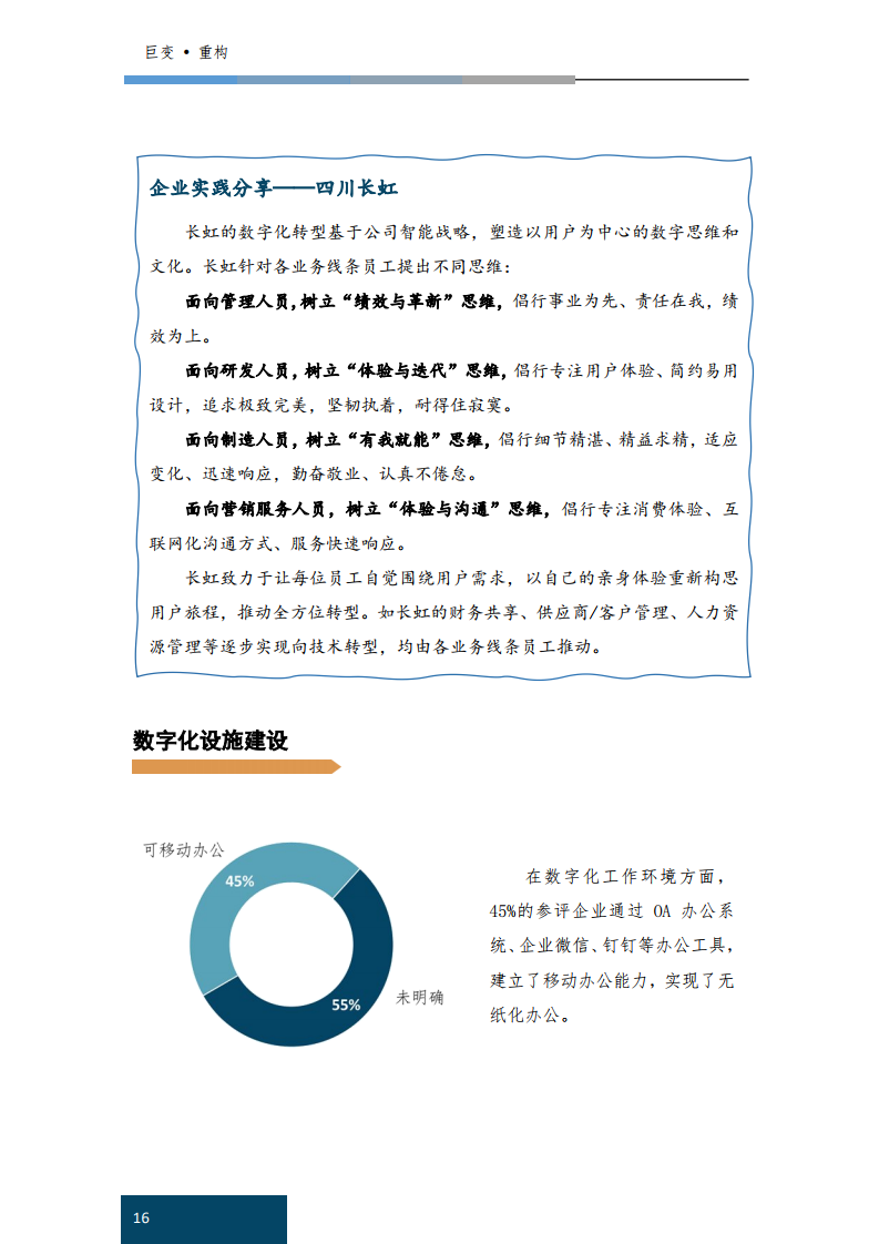 趋势一:企业数字化转型整体成熟度进一步提升。从管理者到员工都普遍参与到企业的数字化转型中,且对数字化转型的认识和理解进一步加深。