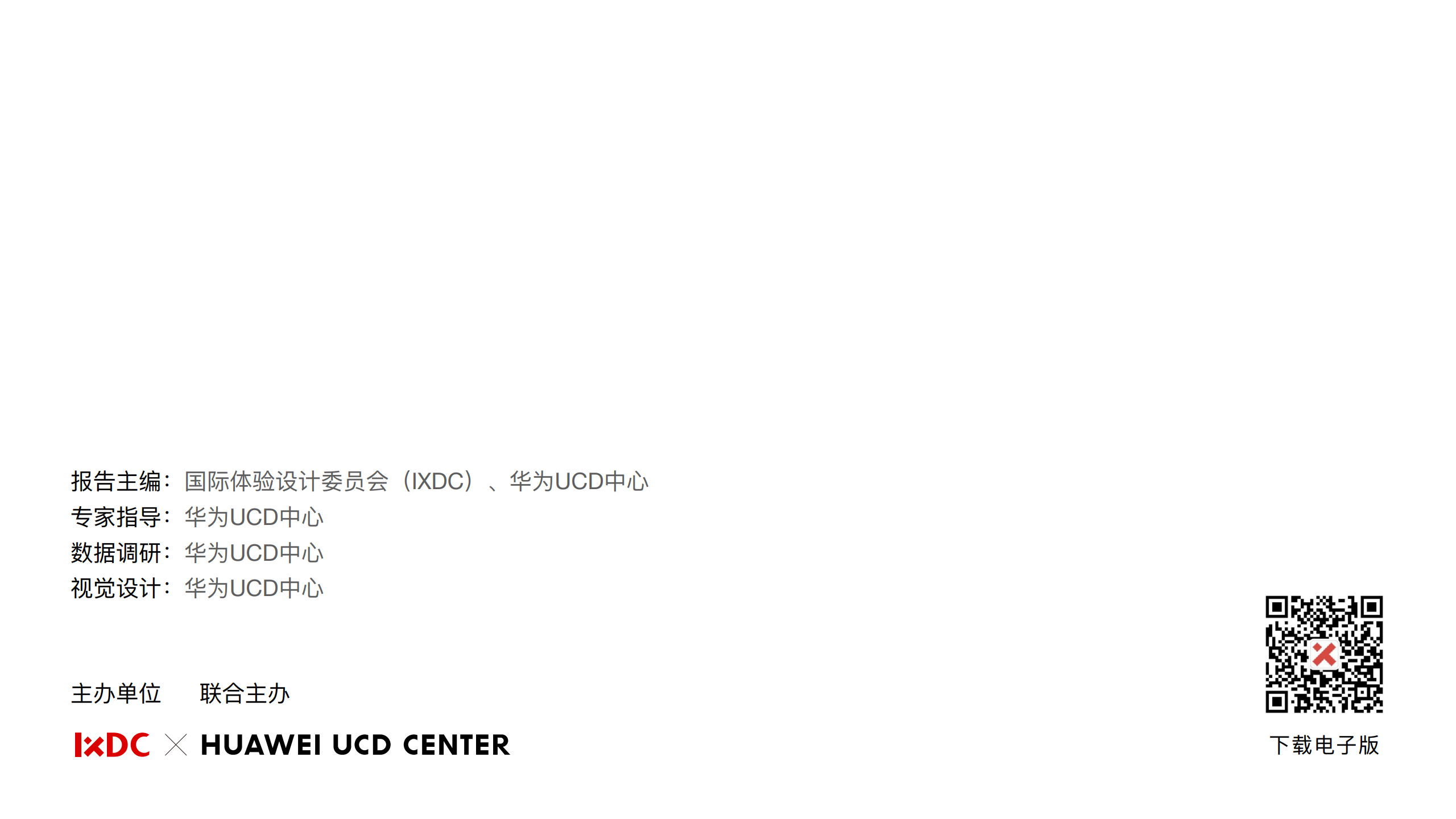 IXDC携手华为UCD中心,面向全球进⾏调研,分析移动智能设备与用户之间的各种联系以及⽬前用户使⽤智能设备的趋势。
