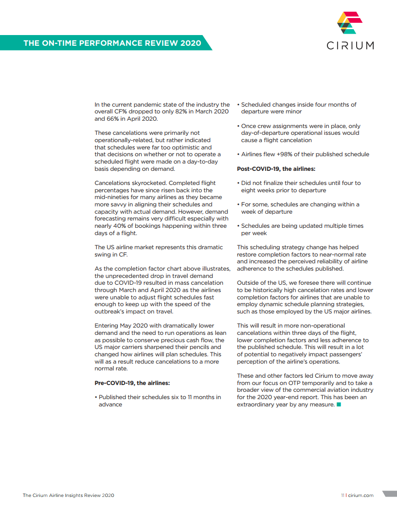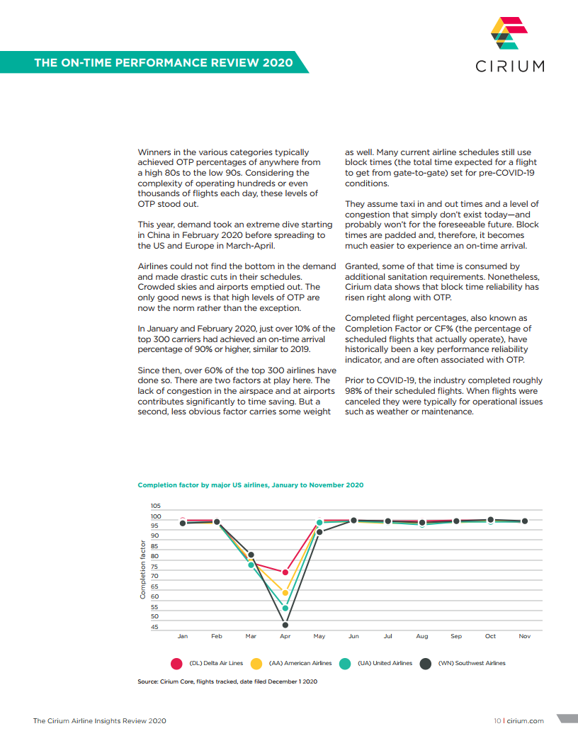 Cirium首席执行官Jeremy Bowen表示:“这一严重挫折表明苦苦挣扎的航空业在后疫情时代重振旗鼓过程中所面临挑战的真实程度。去年此时,我们正表彰在准点率方面表现优异的全球航空公司,但今年的情况则截然不同。大多数全球航空公司在2020年基本准点。但令人遗憾的是,世界各地的旅客、航空公司和业内其他相关公司并未从中受益。导致航班延误的常见因素,如空域、跑道拥挤和转机乘客迟到等,在2020年根本不存在。”