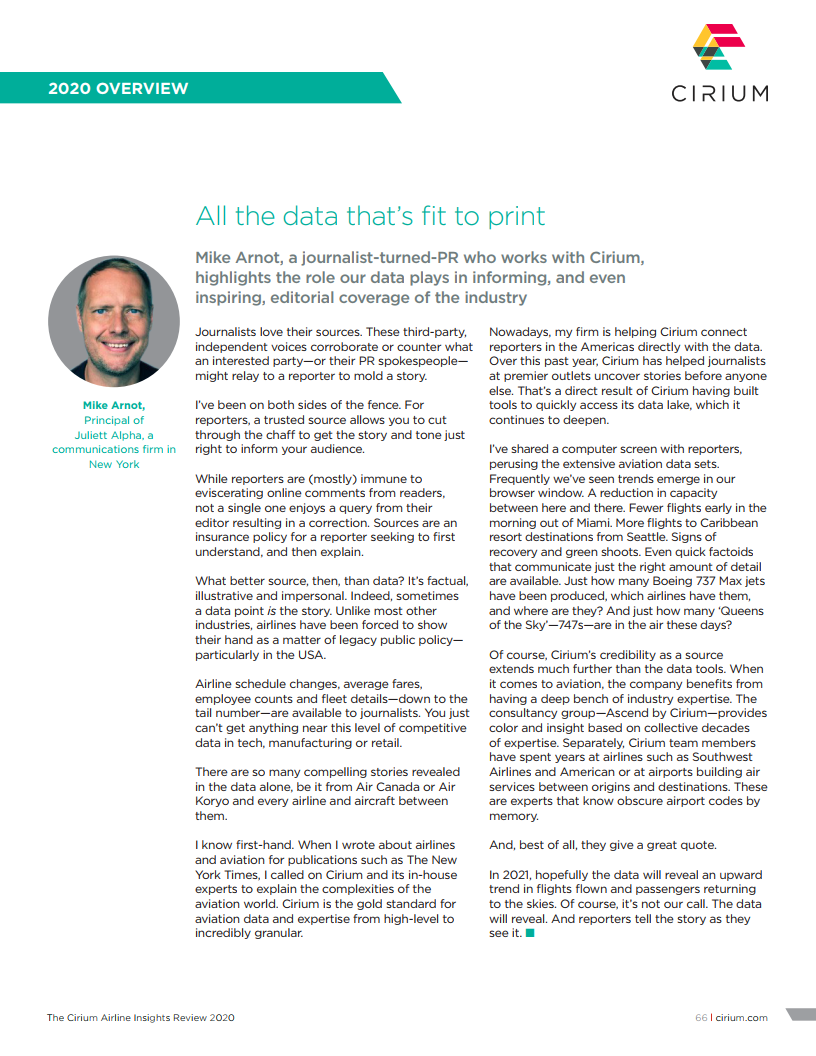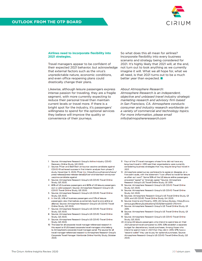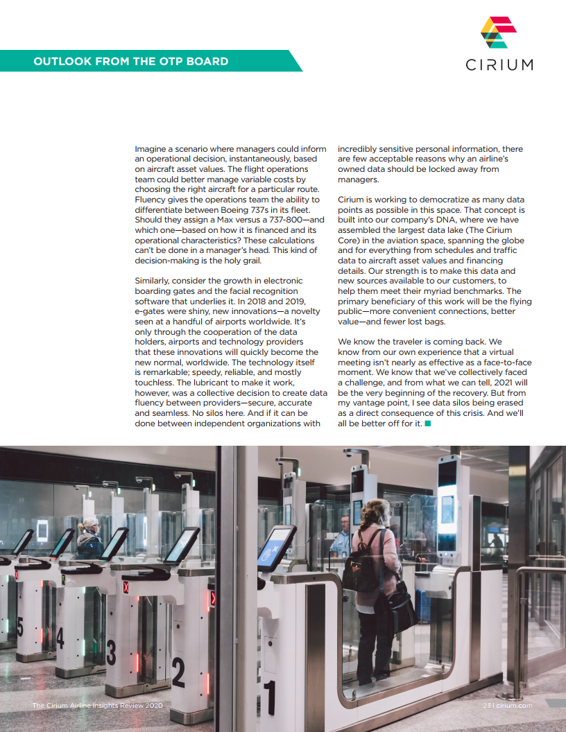 Cirium《 2020 航空洞察报告》揭示的明年七大趋势包括: