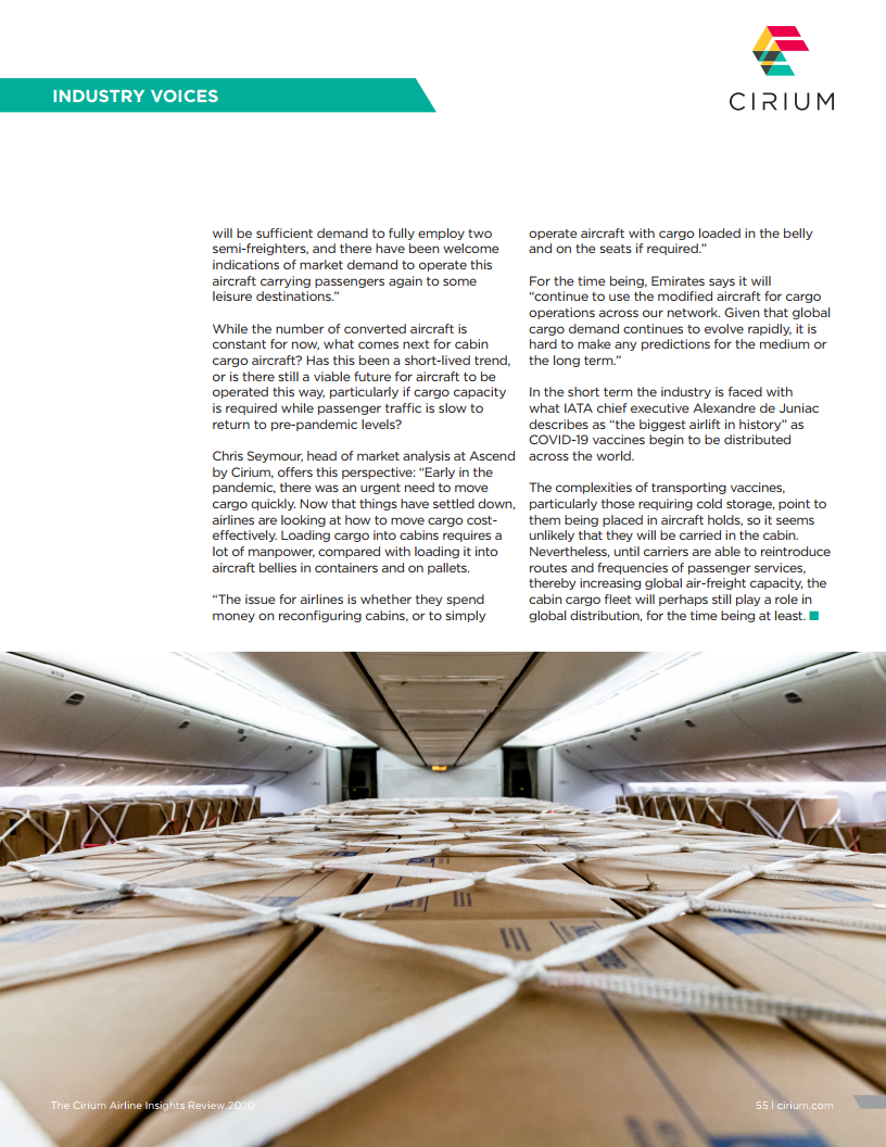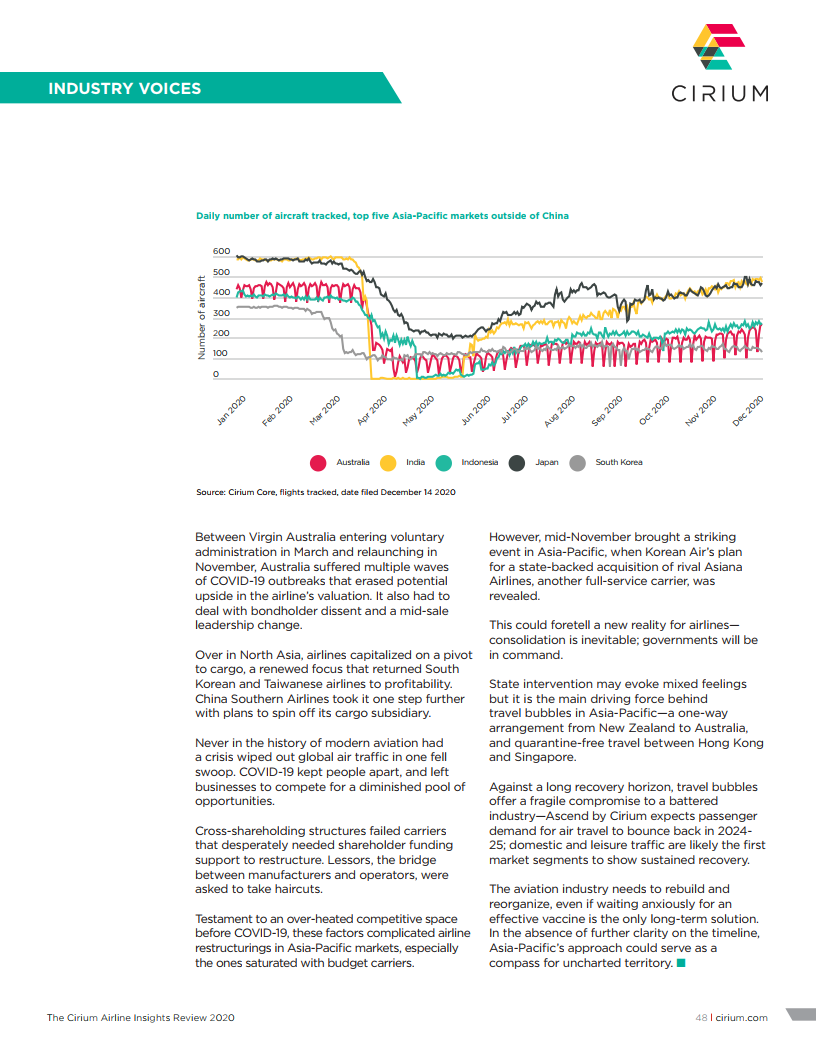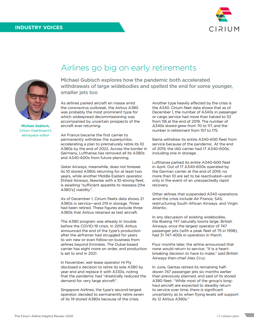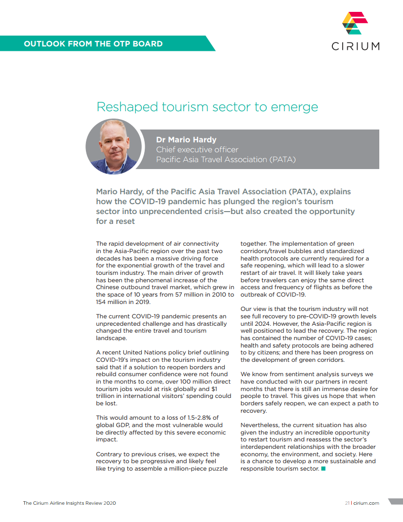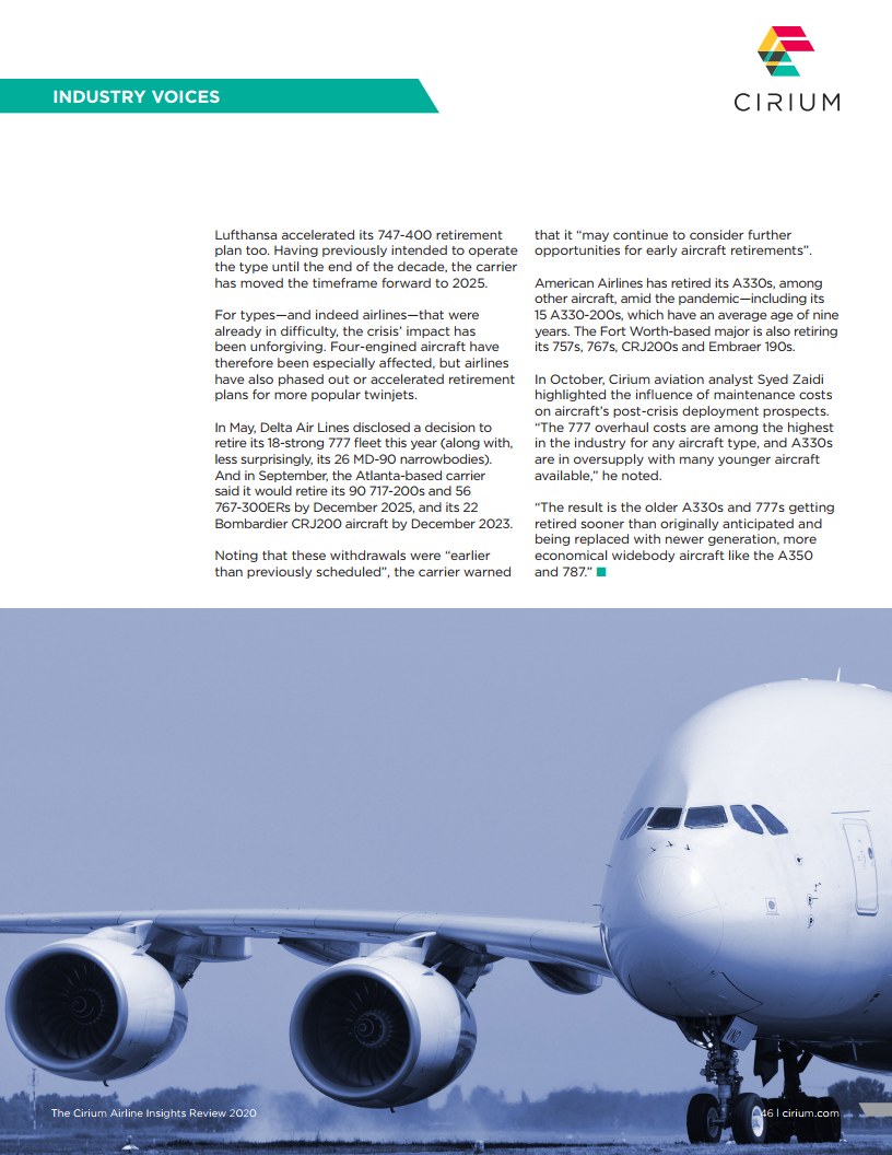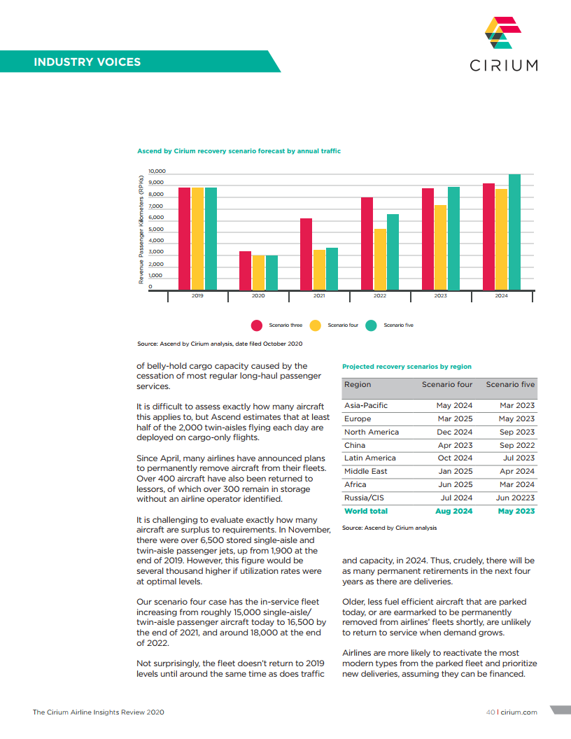 Bowen补充道:“航空公司要回到2019年的水平还需时日,特别是因为国际旅行大幅下降,只有缓慢复苏迹象,且主要在中国和东南亚地区。但是Cirium相信,航空公司将度过这艰难的一年,凤凰涅槃,采用更新、更具燃油效率的飞机和规模适宜的机队,在未来几年逐步走向复苏。”
