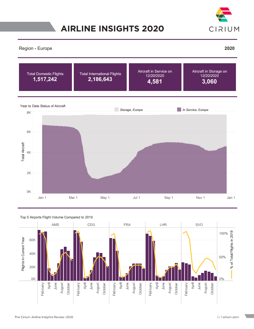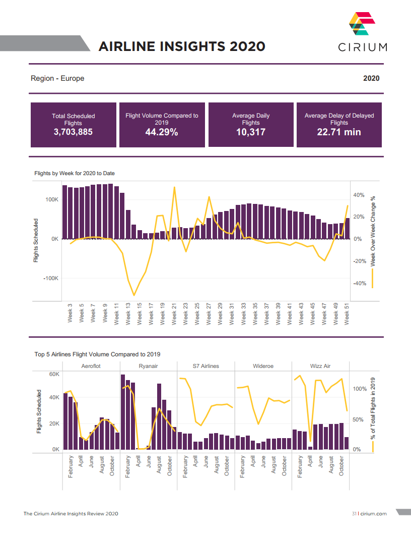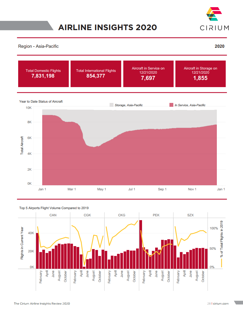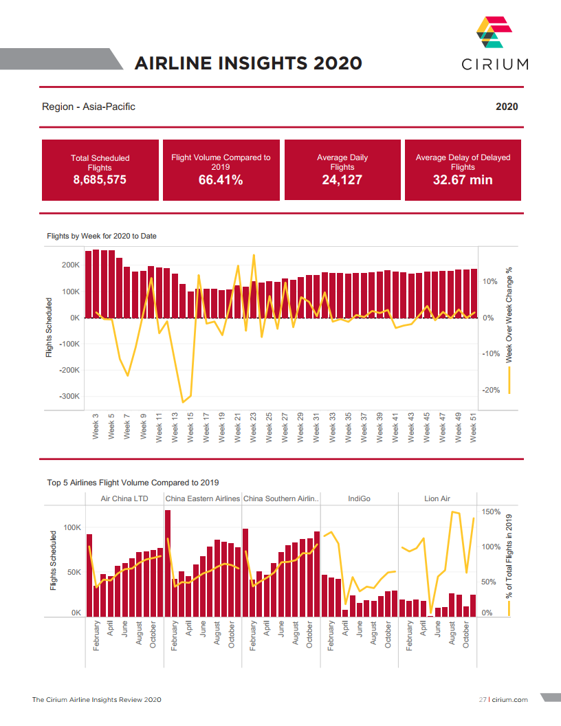 全球航空数据公司Cirium今天发布了《2020航空洞察报告》,揭示了为抑制新冠肺炎疫情而采取的旅行限制对航空业所造成的巨大影响。报告显示,疫情及其影响抵消了全球客运量过去21年的增长。与2019年相比,今年的客运量下降了67%,回到1999年的水平。