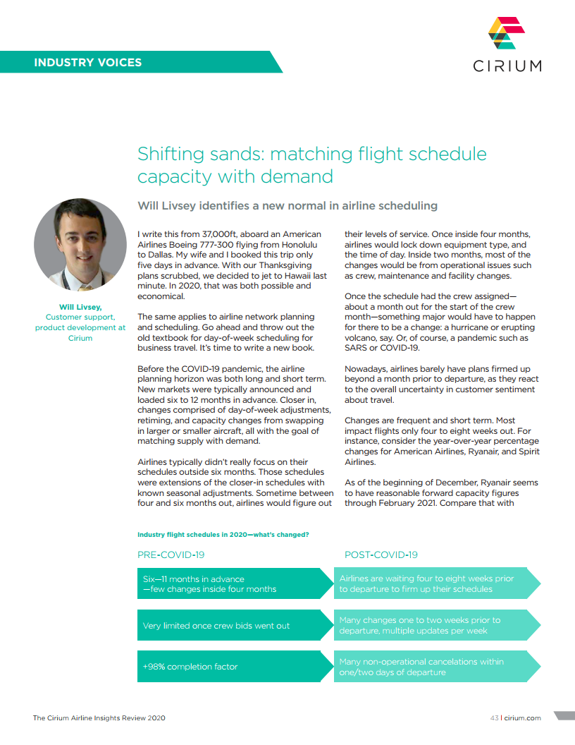 航空公司的未来规划已从6至12个月的航班调度急剧缩减到6至8周,这迫使航空公司提高灵活性,以更快的速度适应世界各地迅速变化的规则和旅行限制。