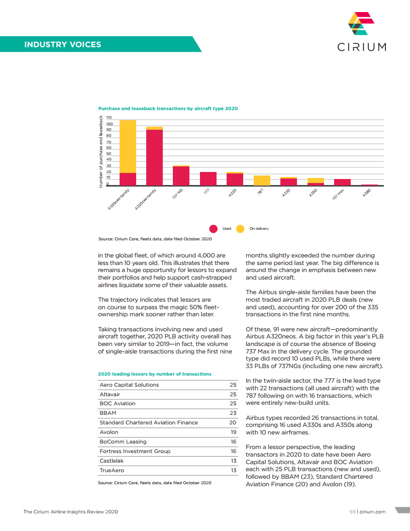 在国内和短途航线服务主导之际,全球使用最多的飞机机型是空客A320,Cirium在2020年追踪到549万架次。
