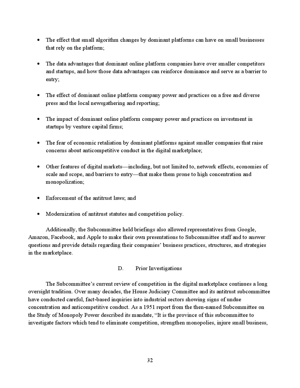 在线平台的主导地位带来了巨大的成本。它减少了消费者的选择,侵蚀了美国经济中的创新和创业精神,削弱了自由和多样化的新闻媒体的活力,并破坏了美国人的隐私。大多数美国人都有这些担忧。2020年9月24日,司法委员会发表了“网络市场竞争调查”。调查结果如下: