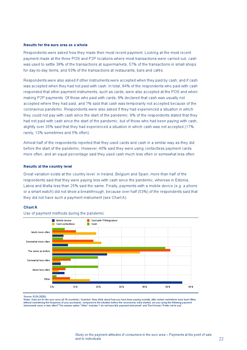 根据2020年7月代表欧洲央行在所有欧元区国家进行的另一项关于疫情对现金趋势影响的调查,40%的受访者自疫情开始以来减少了现金使用量,其中近90%的受访者在疫情结束后将继续减少现金支付(肯定为46%,可能为41%)。