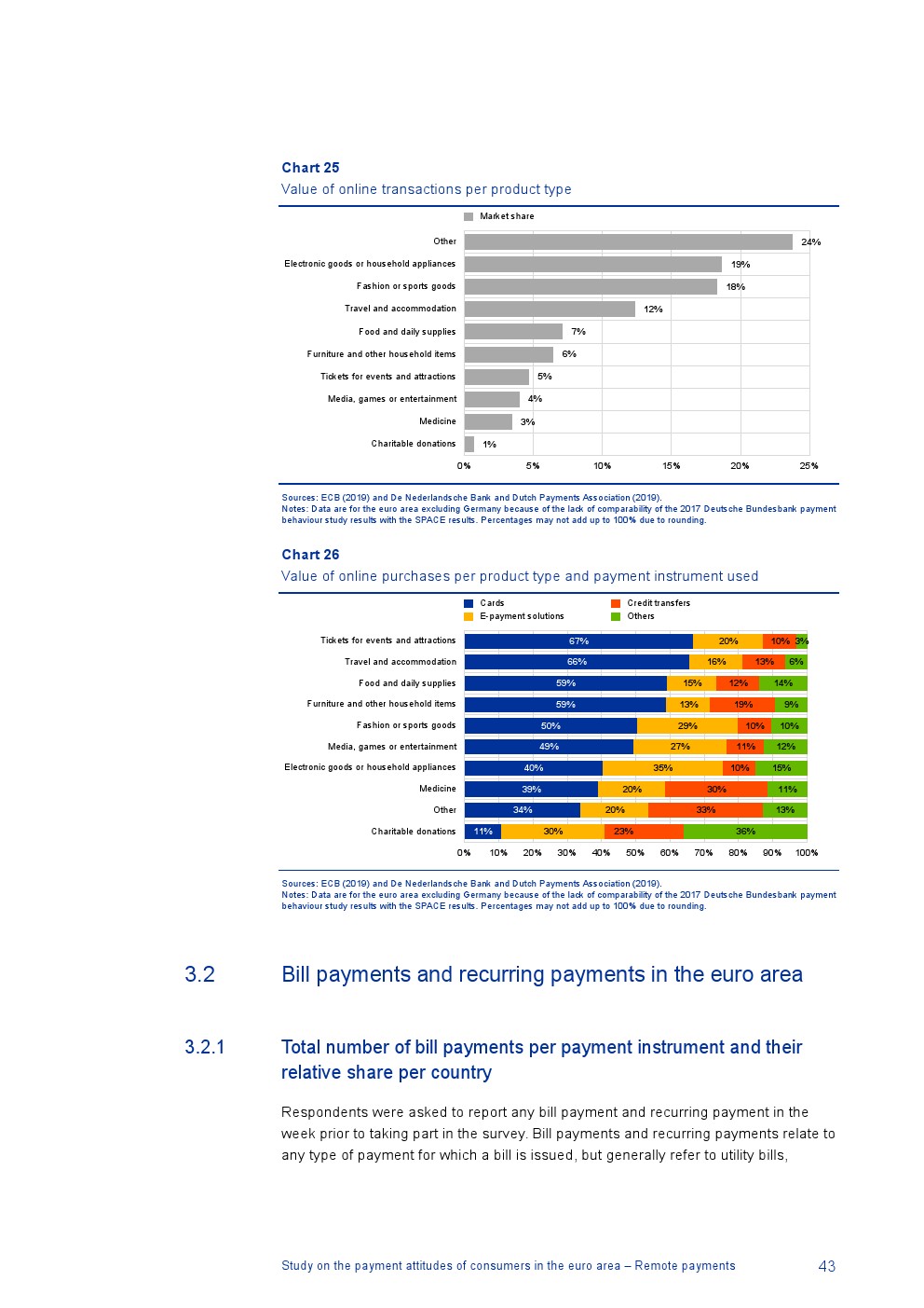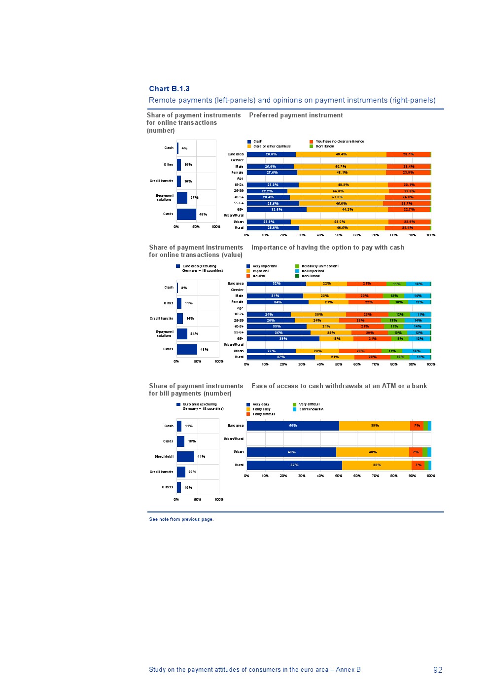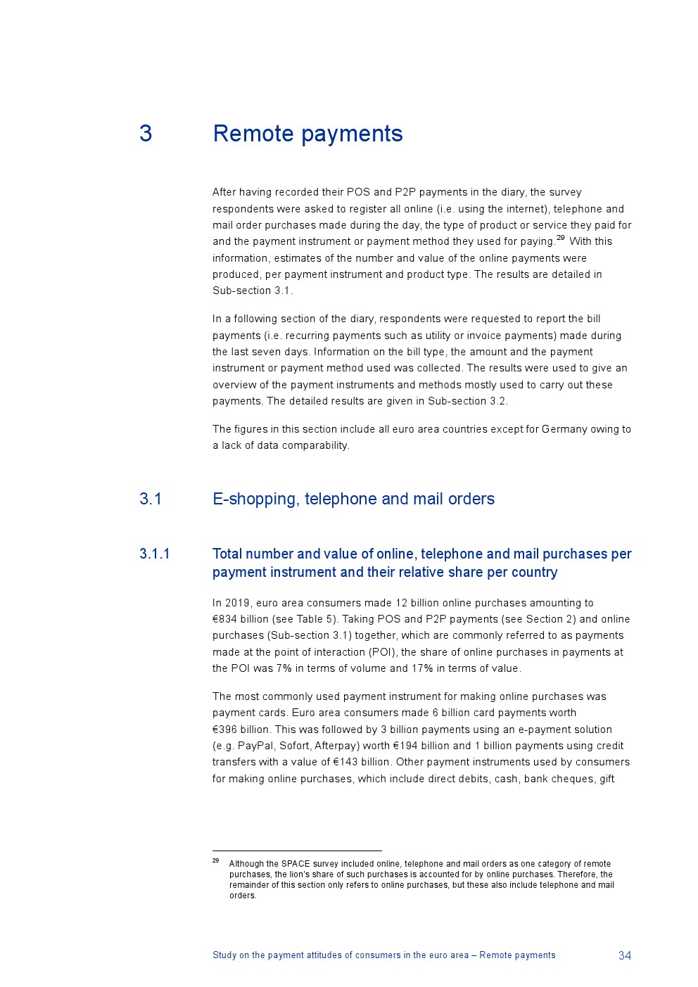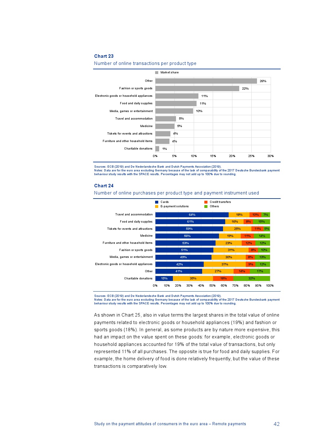 德国没有关于远程支付的可比数据,但是除德国外96%的在线交易使用非现金工具,包括信用卡(49%的在线交易)、电子支付解决方案(27%)和信用转账(10%);4%的在线交易使用现金(例如,货到付款);