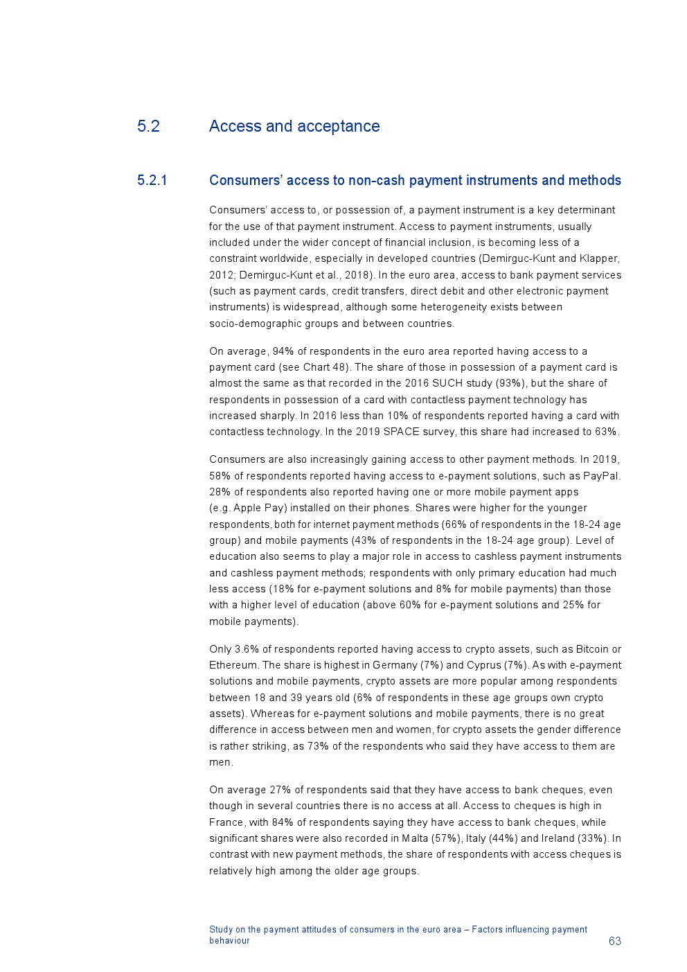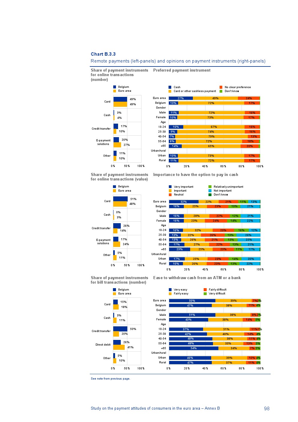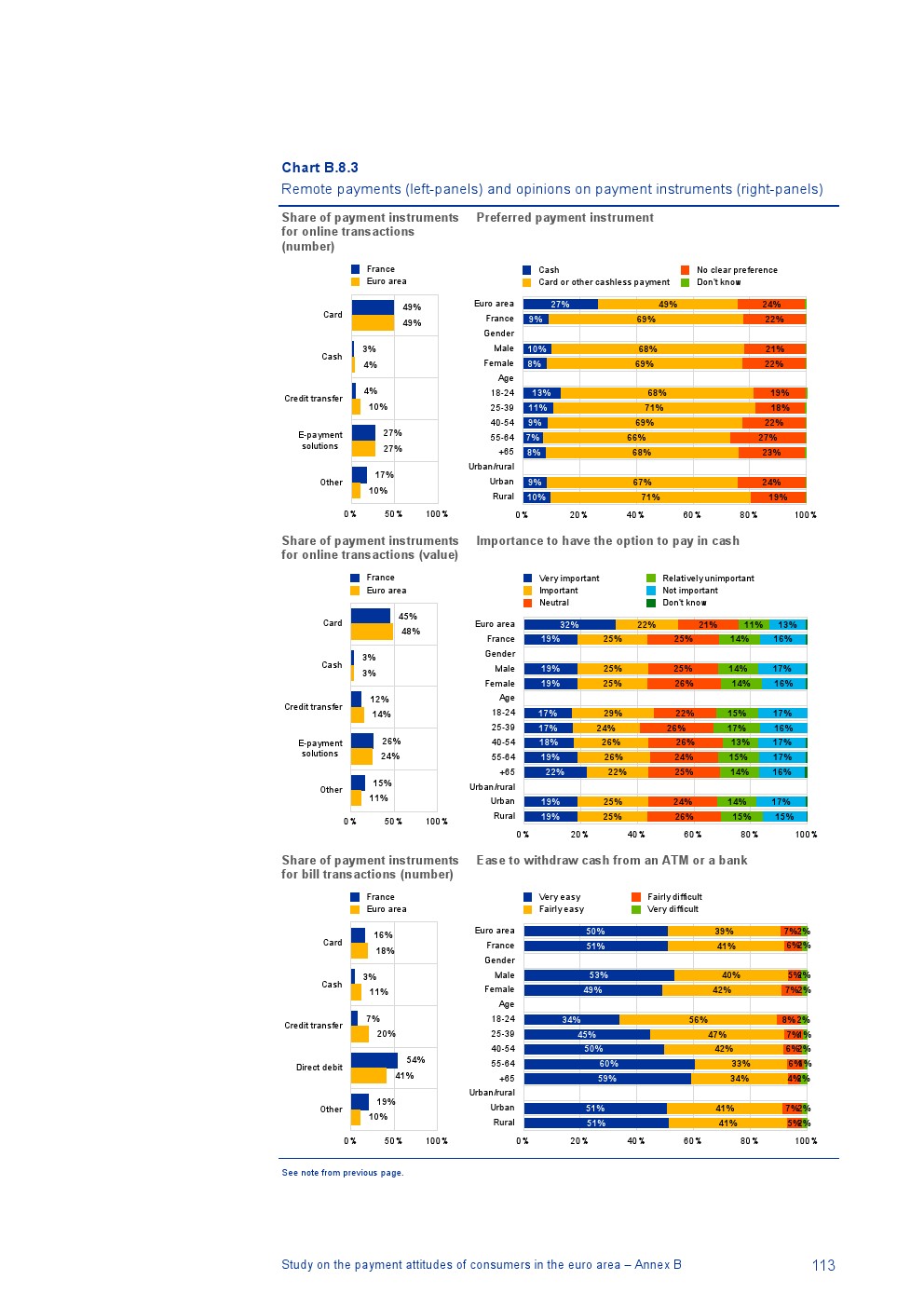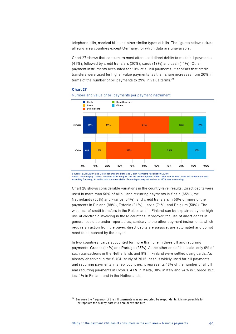 德国没有关于远程支付的可比数据,但是除德国外96%的在线交易使用非现金工具,包括信用卡(49%的在线交易)、电子支付解决方案(27%)和信用转账(10%);4%的在线交易使用现金(例如,货到付款);