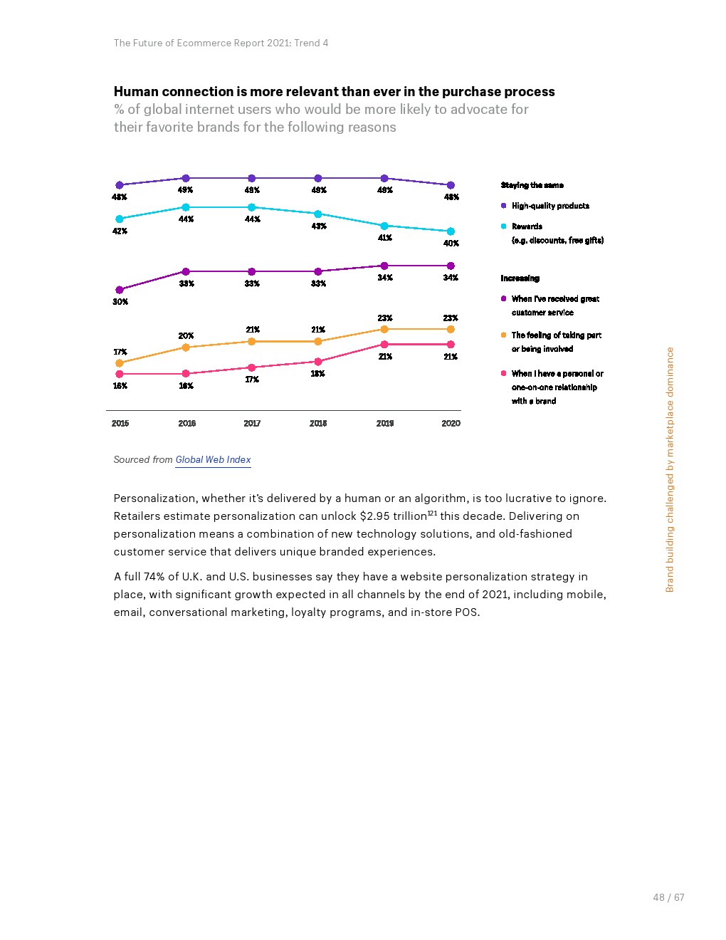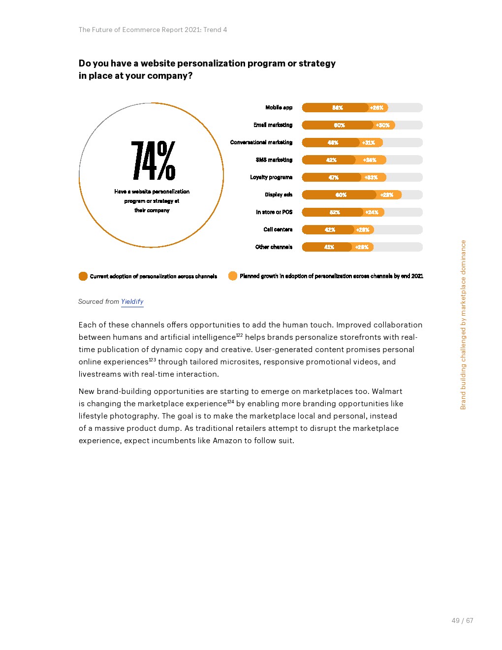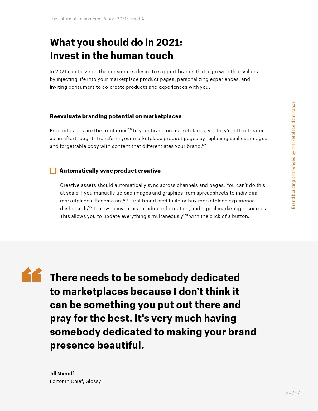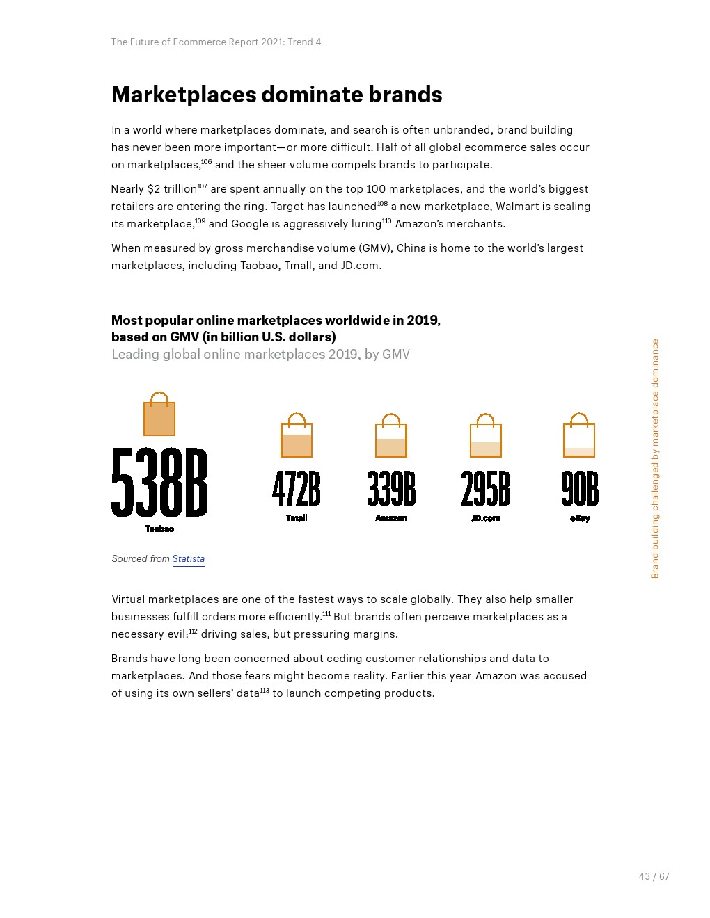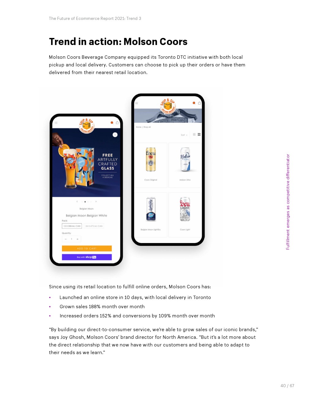 现在的品牌有四个方面的任务:快速、免费、可持续和品牌运输。在全球范围内,64%的消费者希望他们的订单可以免费发货,而高峰级别的电子商务和严格的发货截止时间使得他们很难满足不断增长的客户需求。67%的美国消费者希望当天、次日或两天交货;72%的全球消费者希望品牌使用可持续包装。随着完成订单的成本飙升,品牌必须将完成订单转化为战略资产。履行必须更智能、更贴近消费者和自动化。