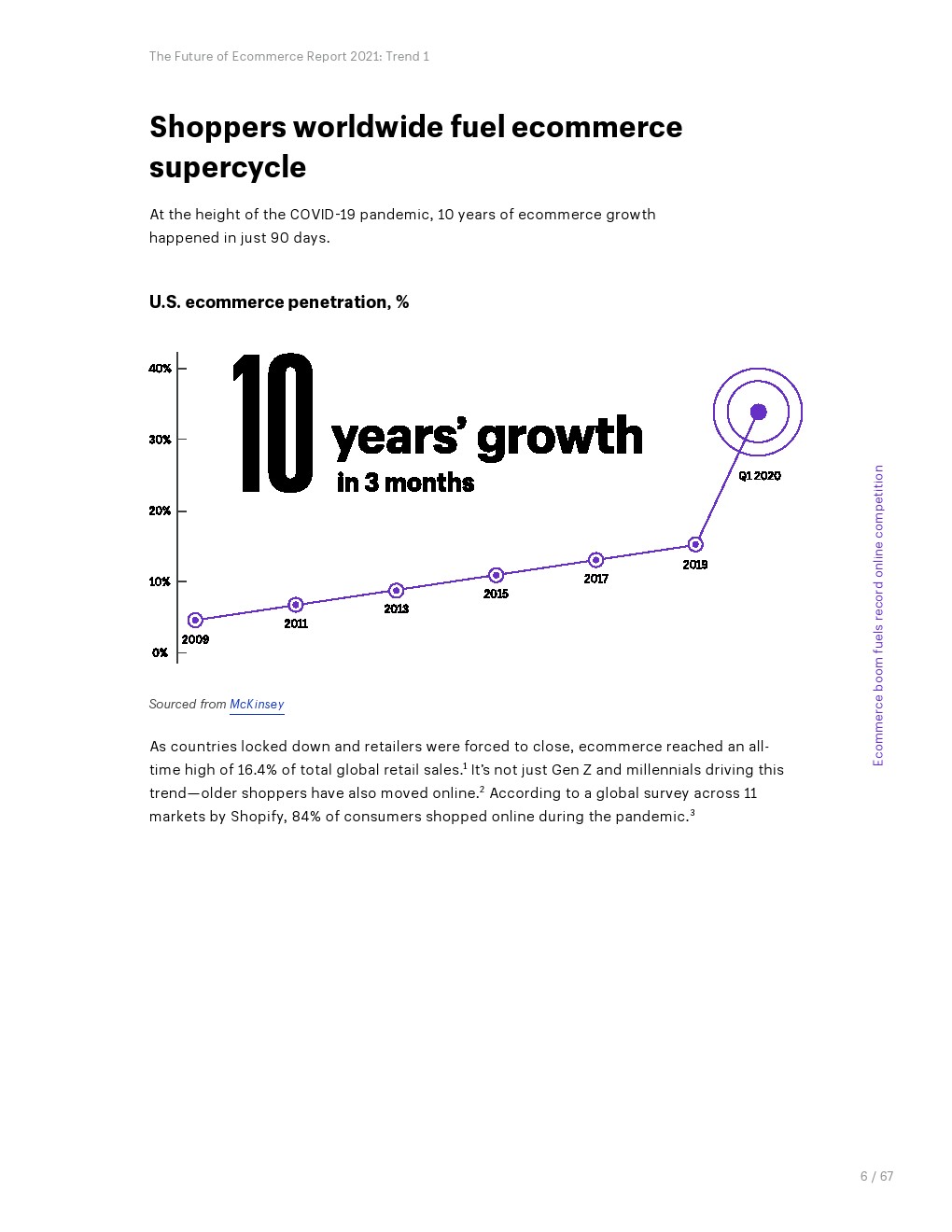 在COVID-19大流行的高峰期,仅用了90天就达到过去10年的电子商务增量。