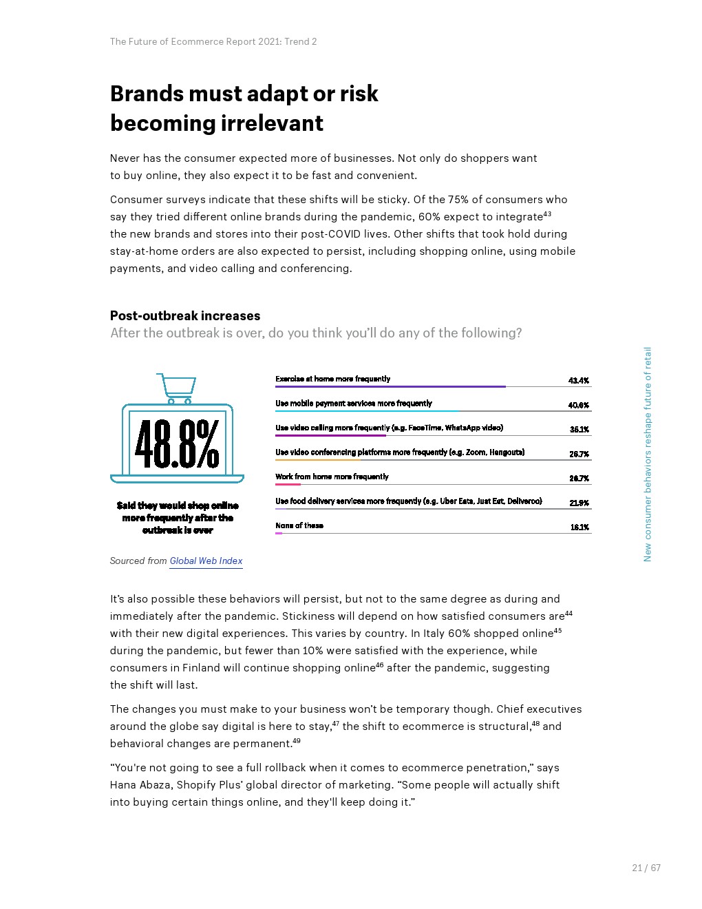 消费者调查显示,75%的受访者表示他们在新冠肺炎大流行期间尝试过不同的网络品牌,60%的人希望将这些新品牌和商店融入他们新冠肺炎后的生活。