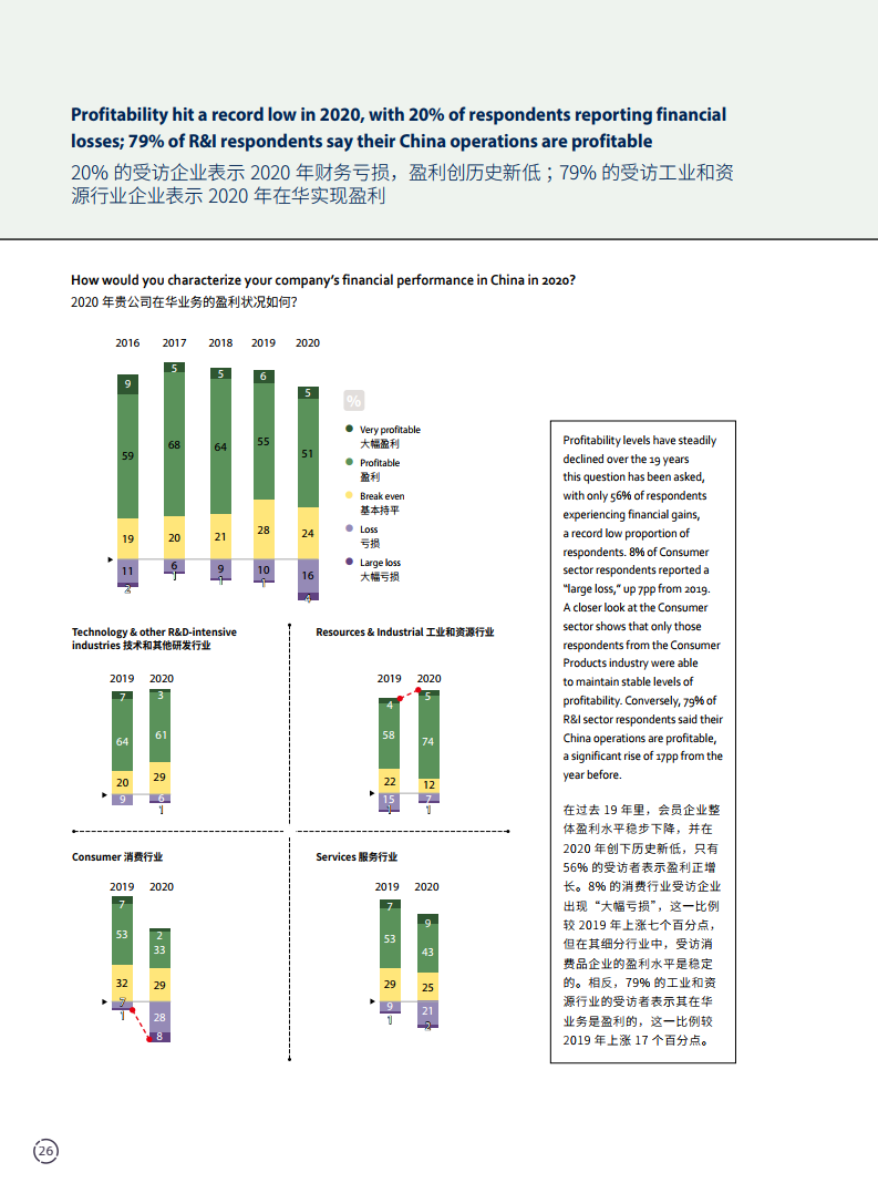 这是商会连续第23年就中国商业环境对会员企业展开调查,其结果为中国营商环境的长期发展及走势,提供了大量有价值的数据。本次报告回收了商会近半数会员企业的反馈,在持续关注中美经贸摩擦对会员企业影响的同时,详细阐述了疫情对企业运营的影响,以及会员企业对知识产权、网络安全等政策法规方面发展的态度。